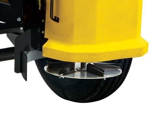 The spreader’s adjustable spinner fine tunes the spread pattern and is constructed of stainless steel to resist corrosion. |