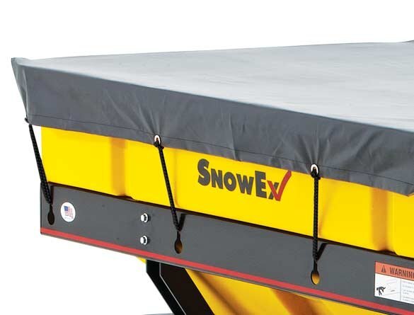A tarp fitted to the spreader’s dimensions protects material from outside weather elements. |