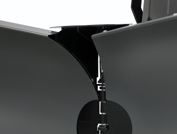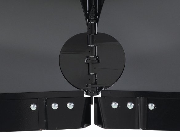 Center pin is robust, yet positioned to make the plow completely flat when in straight blade mode, enhancing snow rolling performance.
