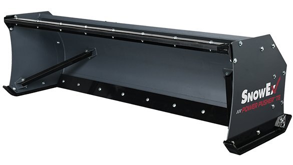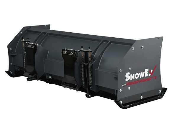 GET A CLEANER SCRAPEAvailable with 8′ or 10′ box widths, the SnowEx® POWER PUSHER TE steel trip-edge pushers are designed to attack all types of surfaces and provide cleanly scraped, “down to black” pavement. The box plows attach quickly and easily to compact equipment and offer large carrying capacities. |