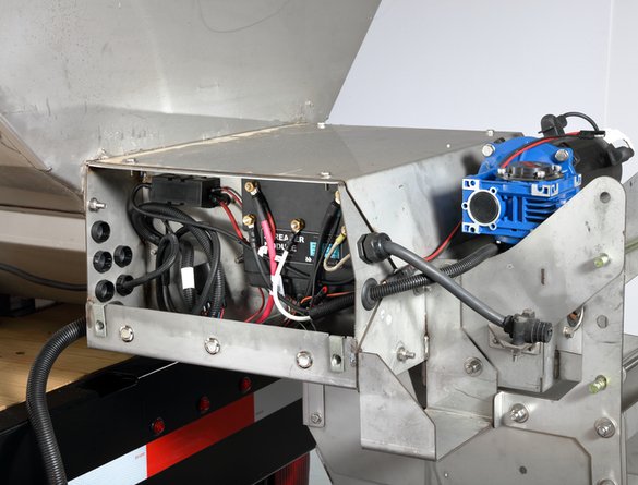 Attached to structural cross member, it vibrates the entire unit (tub and sill) to maximize flow of bulk materials.