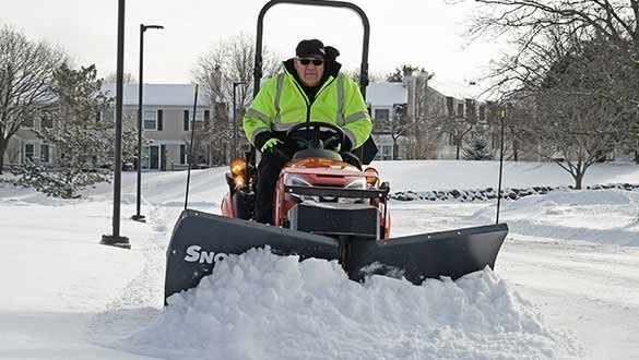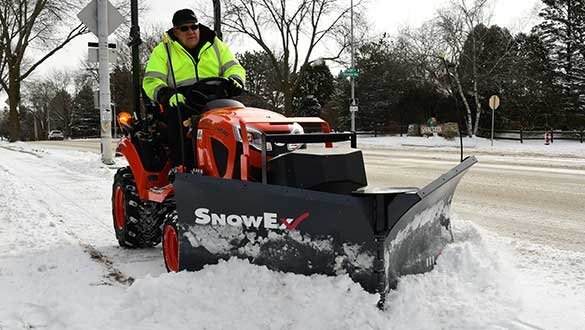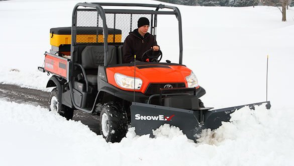 Turn your UTV or sub-compact tractor into a sidewalk snow-removal specialist with the 6’0″ Heavy-Duty V-Plow from SnowEx®. For maximum versatility, the plow quickly configures from straight, to scoop, to V at the touch of a button, angling to 5′ wide to cater to most sidewalks and fit through gates.