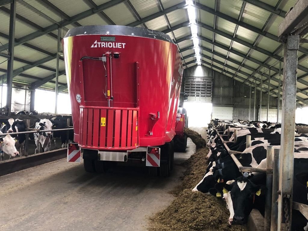 Solomix 3 VLX Feed mixer The Solomix 3 VLX is a heavy-duty TMR mixer with a wider cross conveyor belt or (curved) cross conveyor chain and three vertical augers. This trailed feed mixer wagon is well-suited to dairy farms that wish to process large quantities of feed in a short space of time. The wagon is available in sizes from 1285 to 1650 cu.ft. Whether processing small or large quantities, feed is mixed quickly to produce a mix of uniform structure. Click here for an overview of the unique characteristics of our feed mixers. |