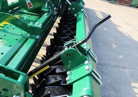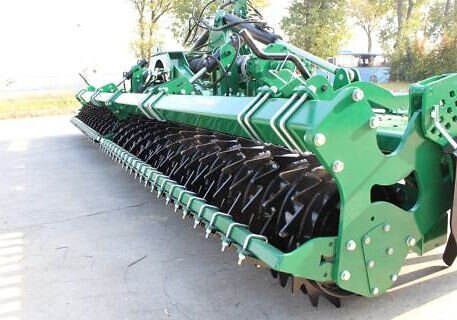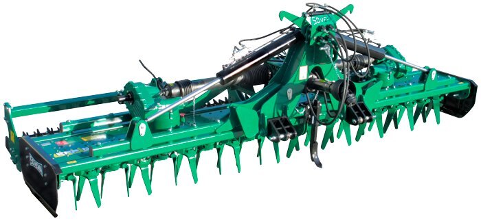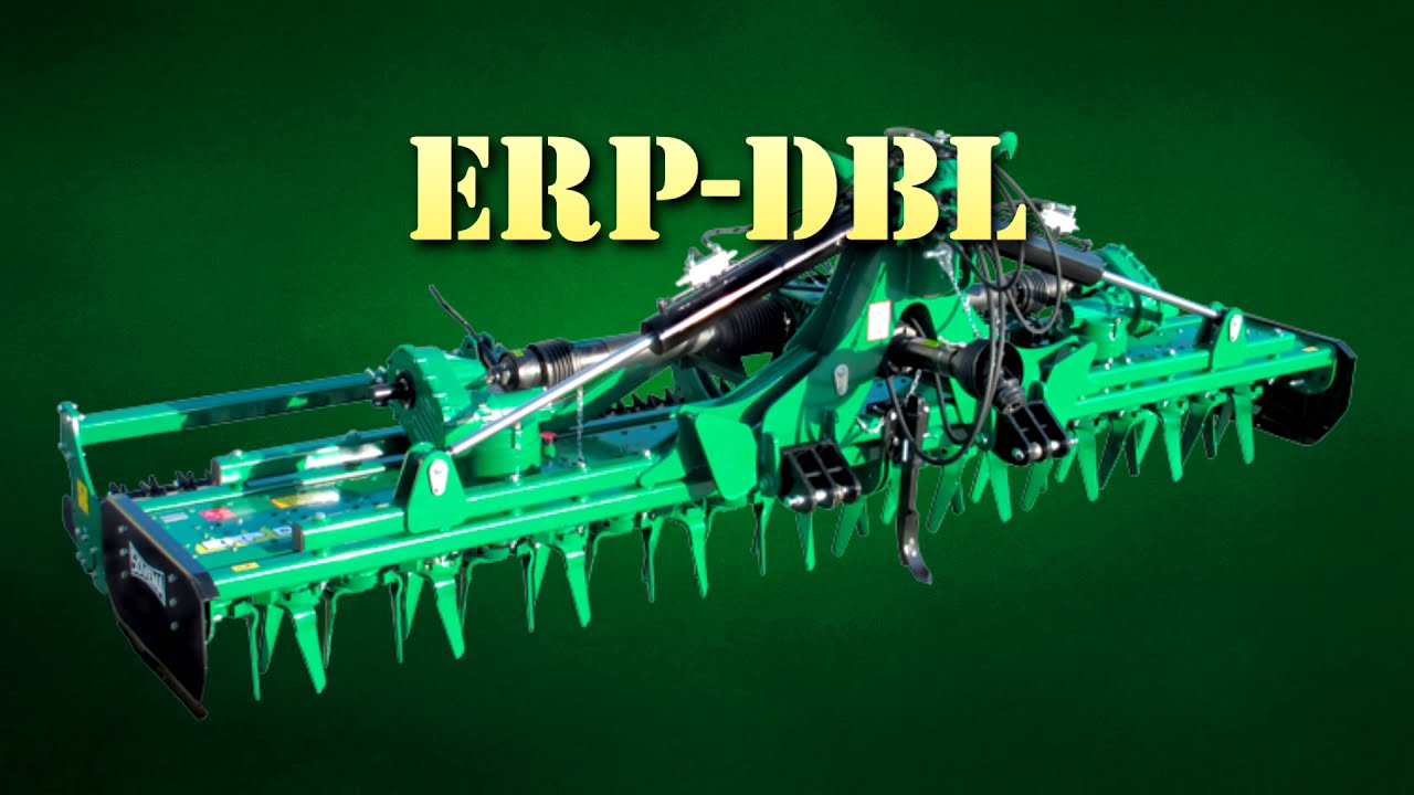 The ERP-DBL folding rotary harrow series has been disigned for large Farmers and Contractors. On a very strong frame two special rotary harrows are mounted, powered by cardan shafts, directly connected to the main central gearbox. A selection of rear rollers available. |