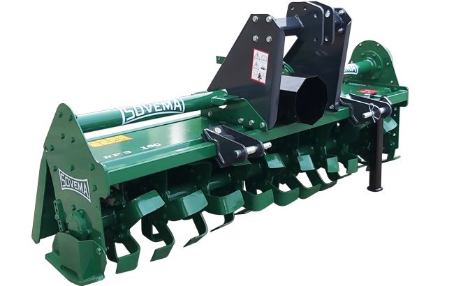 Sovema's medium range of rotary tillers, the RP-3 series is for every day tilling and special chores. Available in several width for tractors up to 60 HP. Chain driven. Single speed (RP-3) or 4 speed (RPC-3) gearbox. Angular (L) or speed (C) blades. Quick hitches predisposition. |