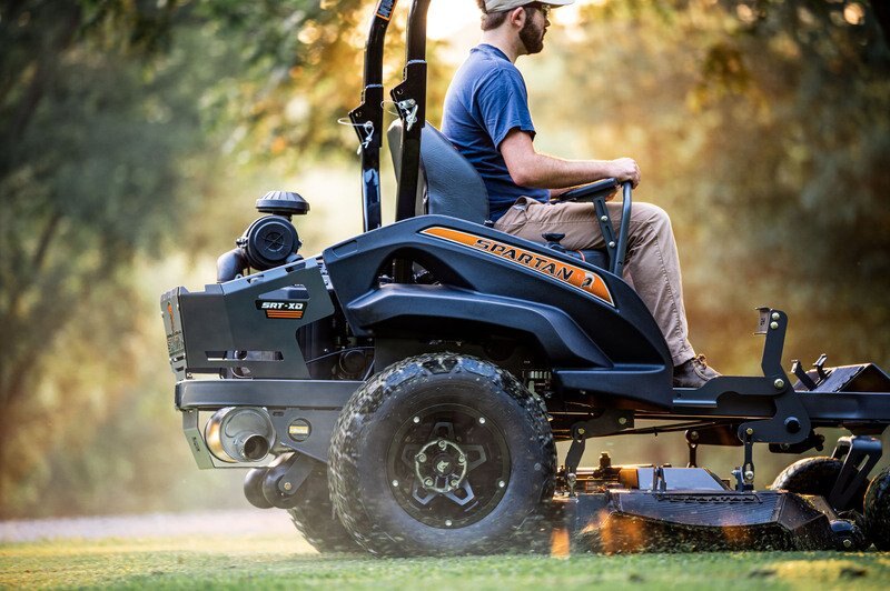 Meet the SRT-XD, a favorite in our Spartan commercial zero turn mower lineup. The biggest Vanguard® engines, along with the two 66 lb Parker HTG-16cc extreme duty transmissions and the five layers of Smart Ride Technology comfort put the SRT-XD at the top of the food chain for commercial quality mowers.