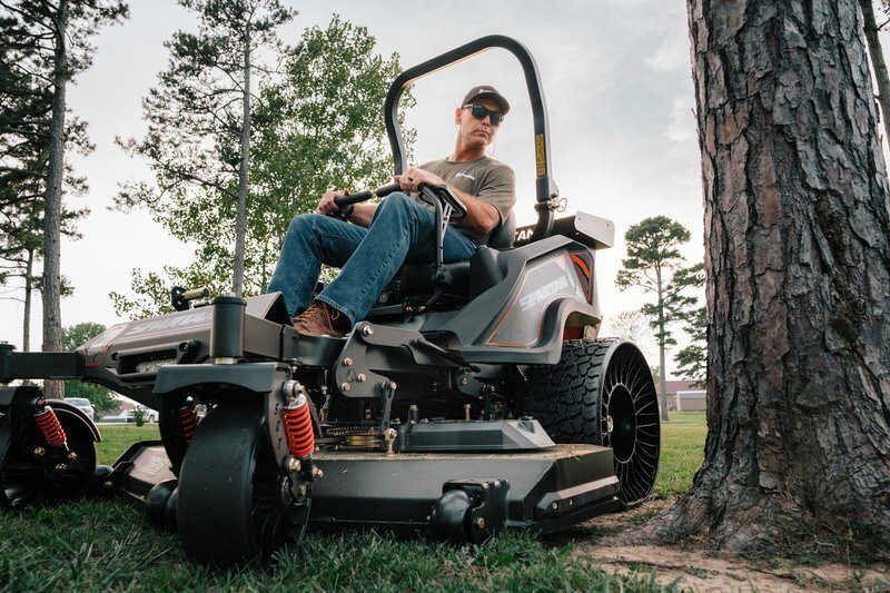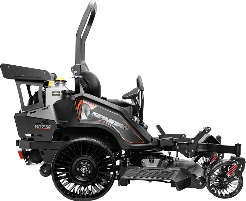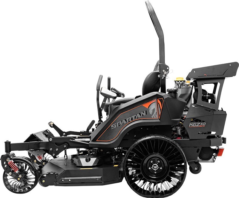 Our top-of-the-line zero turn has it all—40HP Vanguard, full suspension seat, 15 MPH top speed, front and rear tweels, and a spoiler! |