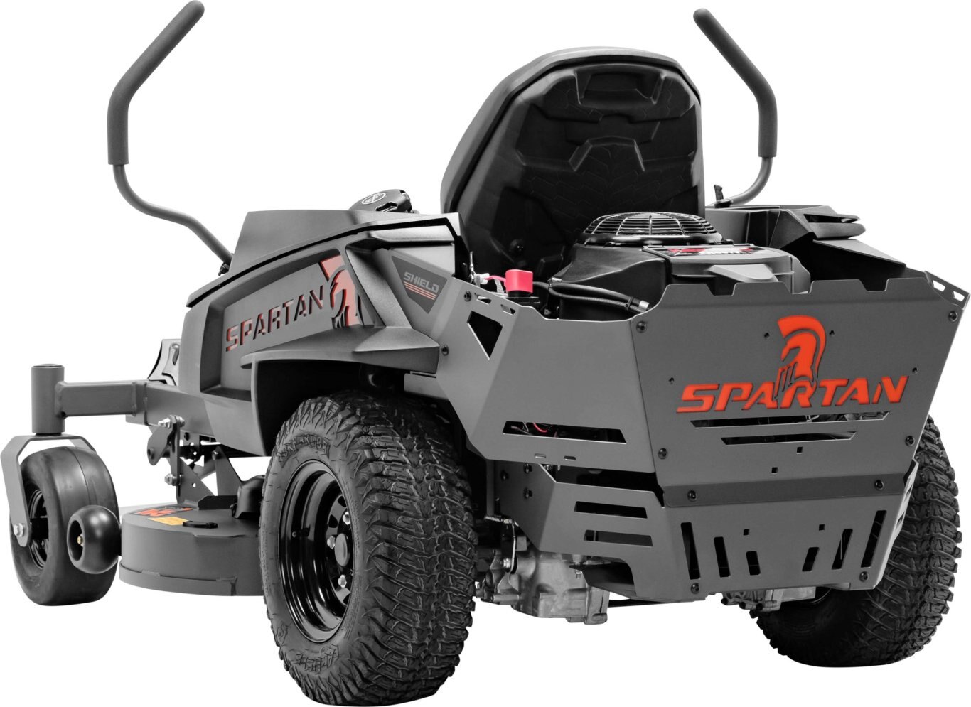 The Spartan Mowers SHIELD is a powerful and efficient residential zero-turn mower, perfect for properties larger than 2 acres. With a Kawasaki engine and Hydro-Gear ZT-220 hydraulic drive system, this mower can tackle tough terrain with ease. Its 42" cutting deck and adjustable steering levers provide a clean and comfortable mowing experience.