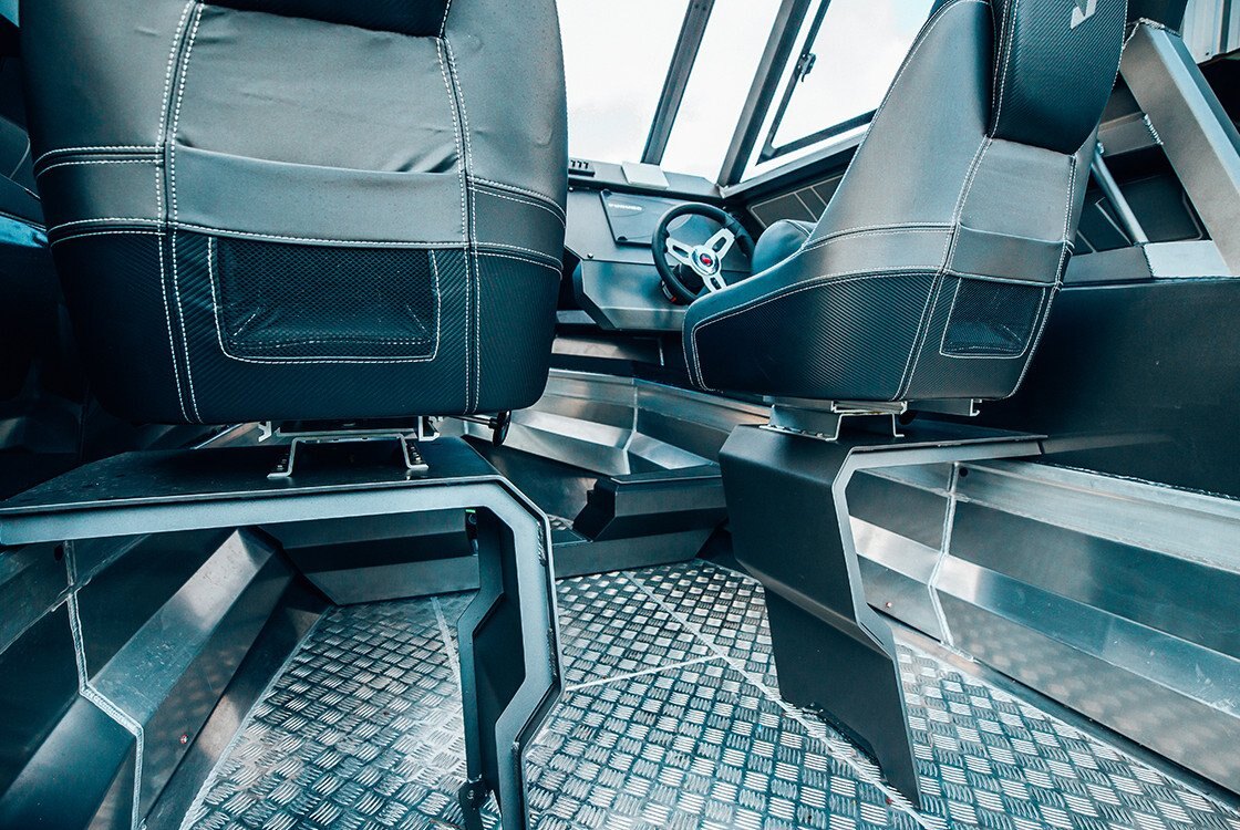 The all-new 1850 Supercab base package retains the no-frills appeal of the 1850-X1 it replaces but it has wider scope for upgrades. EVA foam is now standard fitment on coamings and topside surfaces as is our new “Blade” seat support system that allows for accommodation of a 70L split lid cooler bin beneath them. The base 1850 Supercab comes with dual frameless sliding windows port & starboard and a 150L underfloor fuel tank. Options may be chosen from all of the most popular upgrades including drum winch, wiper, hydraulic steering, elite bolster seating, bait board & transom walkthrough.