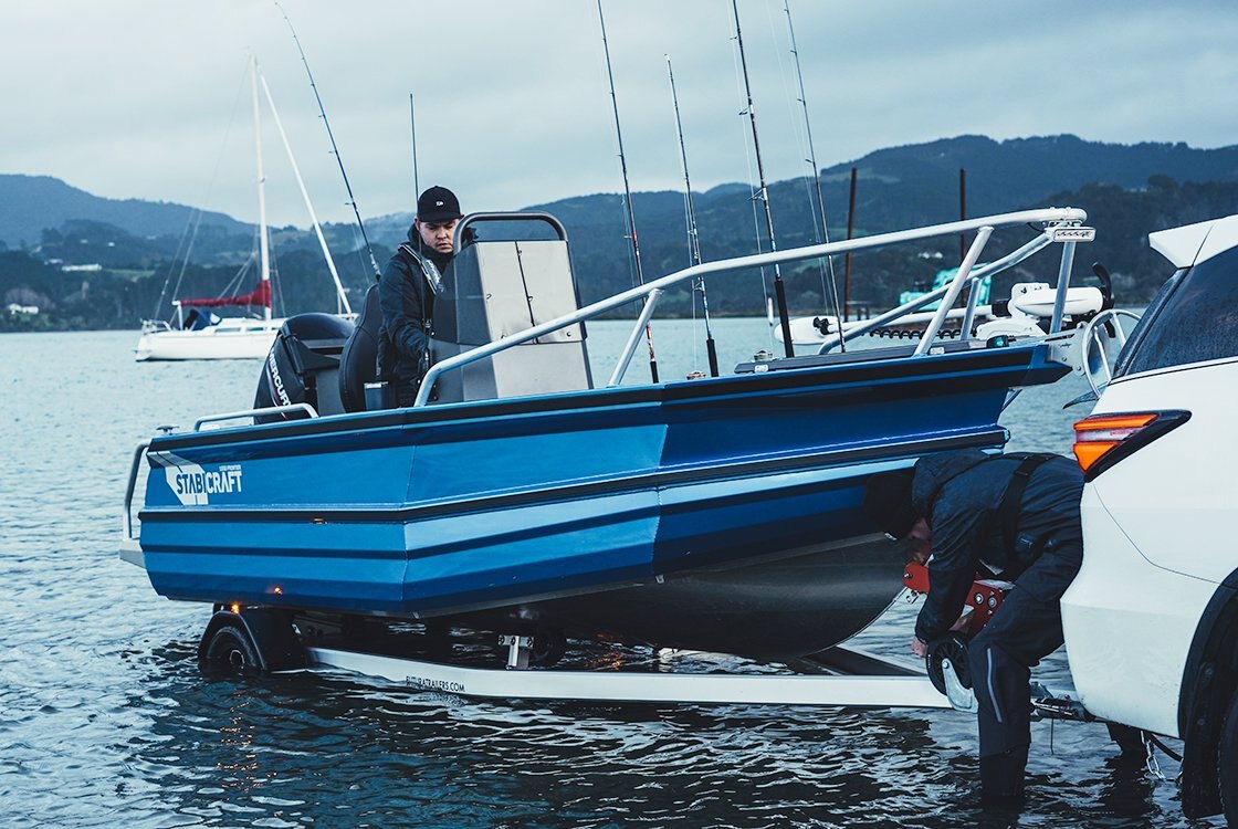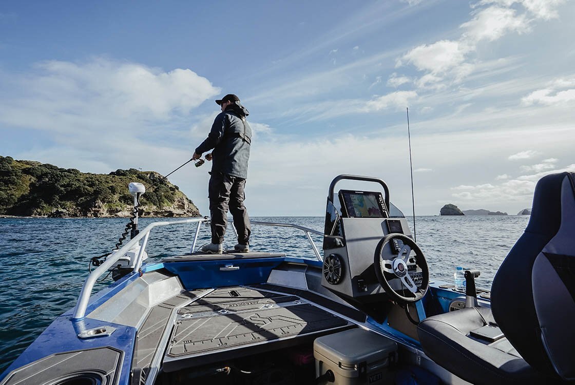 All the basics plus some awesome standard features. Even as a base model this package is a weapon with EVA foam as standard on all the topside surfaces and with dual boarding platforms & a ladder standard too. It’s a very big boat for its size and you’ll be blown away with the room onboard. The base boat is set up for tote-tank fuel with a fully welded treadplate floor. A windscreen & grabrail is also included as standard and a selection of available options allows the addition of bait board, coaming handrails, Fishpro seat, washdown pump and the awesome removable casting platform in the bow.