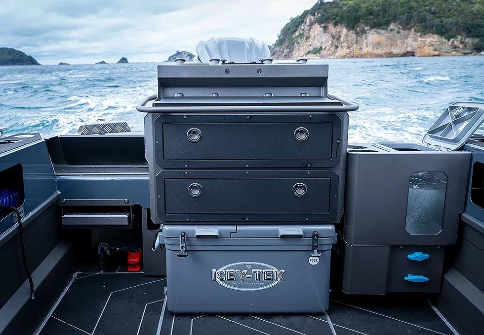 The Sportfish package showcases the most popular options typically selected on a 7m+ hard top. The package includes all the standard essentials already included in the Adventure package plus the additional comforts of a canvas rear wall to keep you warm and dry, V-berth extendable to full length, cabin lining, folding passenger seating and suspension seats at the helm. It sports a superbly appointed Superfish transom, including a lockable drawer, 2x leader spool holders, a top-mounted live bait tank and a sliding bait board. The Sportfish is finished in Stage-1 belting up gloss paint and is ready for a huge range of upgrade options.
