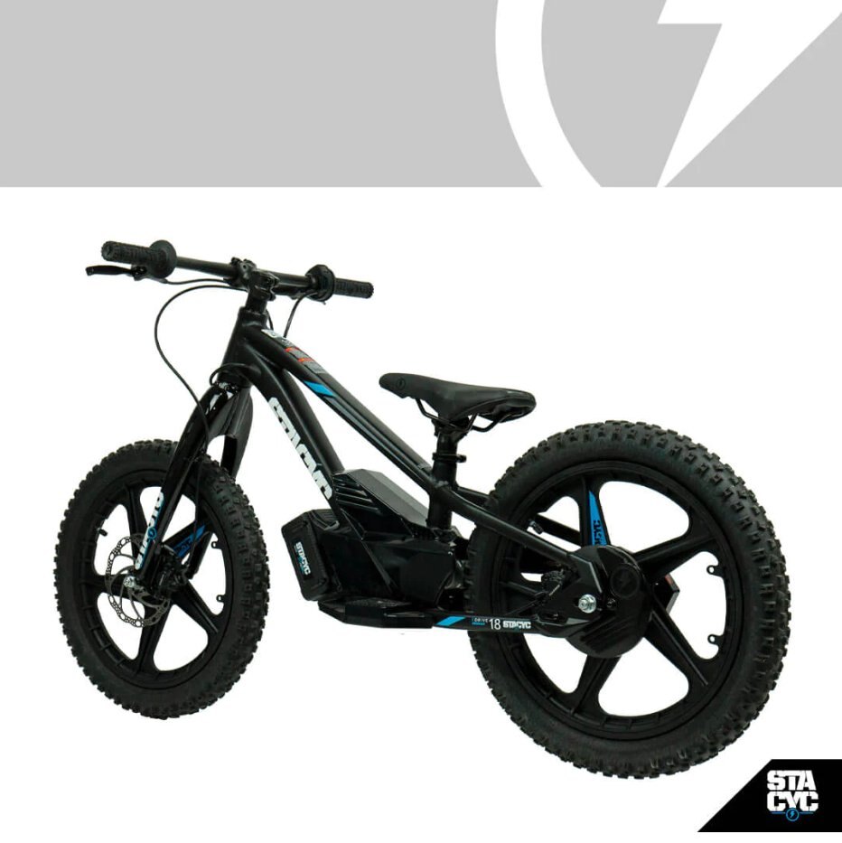 The STACYC 18eDRIVE is the next choice for the STACYC GENERATION and ready to deliver a whole new riding experience.   With 3 power modes the 18eDRIVE will still allow the progression your little rippers expect from STACYC with a much larger growth curve. A top speed of 18-MPH, and dressed with hydraulic disc brakes the STACYC 18eDRIVE has the ability to unlock endless opportunities and develop the skills your little rippers have dreamed of. Weighing in at 31lbs with the battery, the 18eDRIVE is perfect for kids between 8-10 and up to 115lbs.