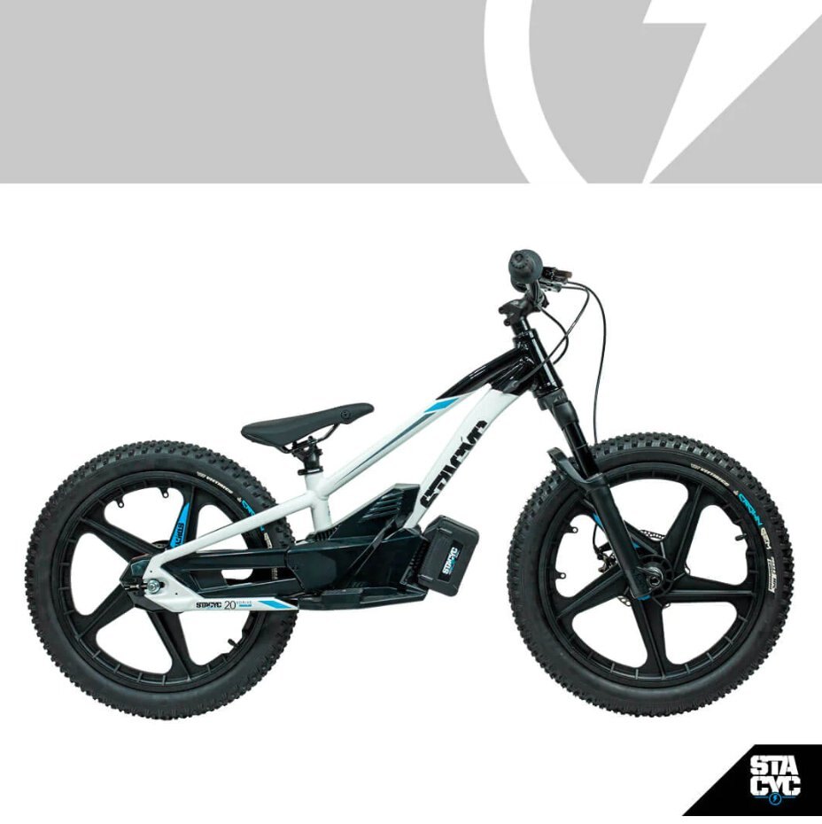 This is the top choice for theSTACYC GENERATION and ready to deliver a whole new riding experience. With 3 power modes the 20eDRIVE will still allow the progression your little rippers expect from STACYC with a much larger growth curve. A top speed of 20-MPH, and dressed with MANITOU J-Unit front forks and hydraulic disc brakes the STACYC 20eDRIVE has the ability to unlock endless opportunities and develop the skills your little rippers have dreamed of. Weighing in at 33lbs with the battery the 20eDrive is perfect for kids between 10-12 and up to 115lbs.