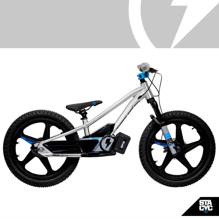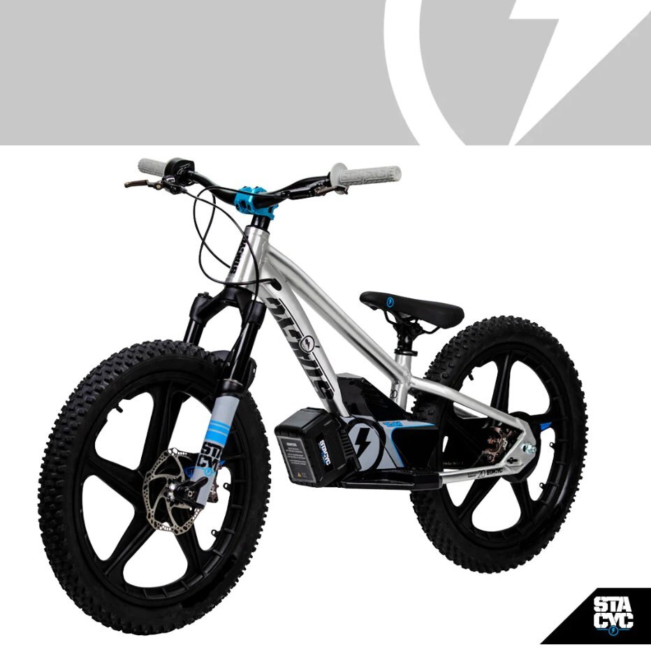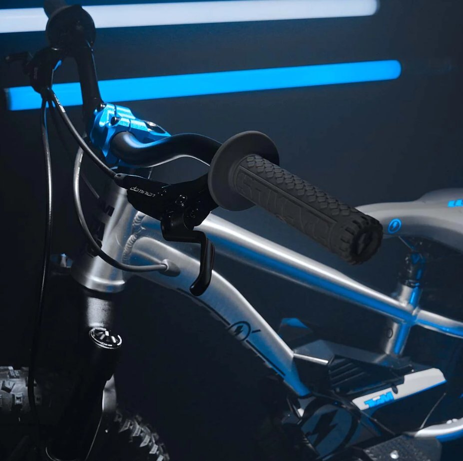 The TEAM Edition arrives fully equipped with a distinct brushed aluminum frame, cyan anodized stem, Hayes Dominion A2 brakes, Manitou JUNIT forks, gray STACYC grips and exclusive TEAM Edition graphics. All the bells and whistles to elevate your growing ripper’s style and performance!