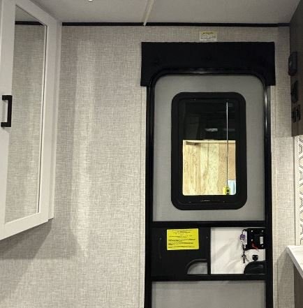 • Friction hinge entrance door with window and shade prep