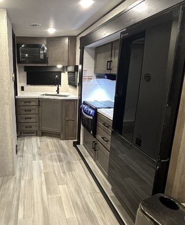 The Autumn Ridge Travel Trailer has a wide variety of floorplans, for a couple or families, from first timers to seasonal road warriors, seeking their next adventure. The Autumn Ridge Travel Trailer uses the Magnum Roof™ System making the roof fully walkable. The PVC Roofing Membrane material has a limited lifetime warranty, is tear resistant and does not absorb heat. Included across all Starcraft RV products, the Xtend Solar 1 Package ensures ample power for continuous refrigerator operation and lighting. The dependable solid swing-down steps make entering and exiting your camper easier and safer. Standard in the kitchen, is a 12V 10 cu. ft. refrigerator and flush mount range with glass top, both providing more space, regardless of the floorplan. Press membrane countertops are utilized in both the kitchen and bath, to guard against water spills and leaks. This entry-level travel trailer is available as a single or dual axle RV. There’s sure to be something for everyone!