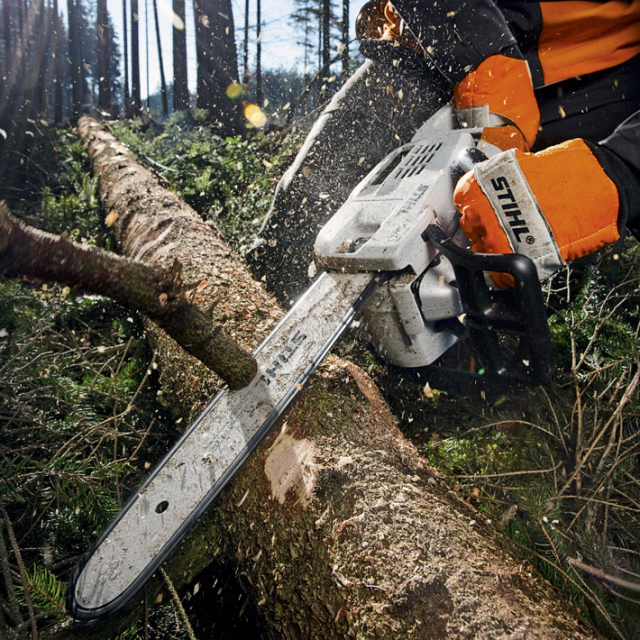 The Ematic chain lubrication system ensures pinpoint lubrication of the saw chain links and guide bar rails. When used with STIHL OILOMATIC saw chain, it will provide maximum lubrication, longer wear and less oil consumption than conventional methods of chain lubrication. The Ematic system can reduce bar oil consumption by up to 50%.