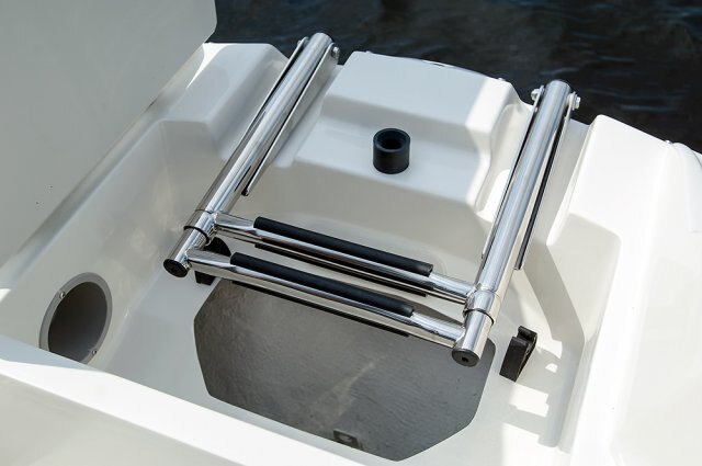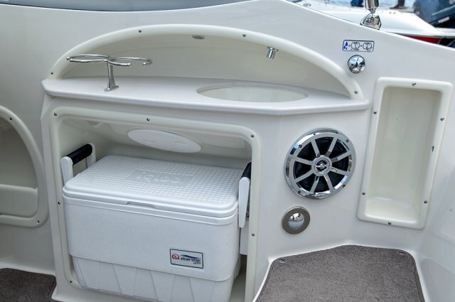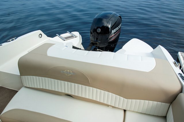 | The 214LR is the outboard version of our popular 215LR sport deck model, featuring a wide body cockpit for optimal passenger space and a large, functional head compartment for weekend trips. Other standard features include a freshwater sink, removable 25-quart cooler, self-bailing cockpit, pressurized bow and transom showers, and a removable cockpit table for entertaining. We invite you to compare our model (features, performance, and fuel efficiency) to others on the market. |