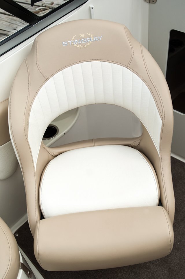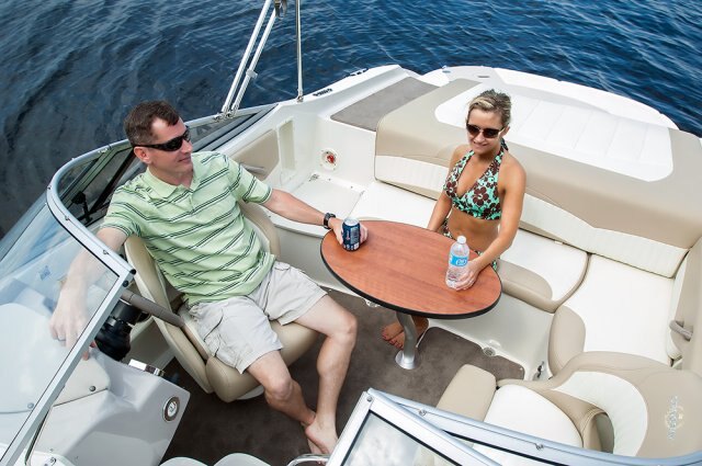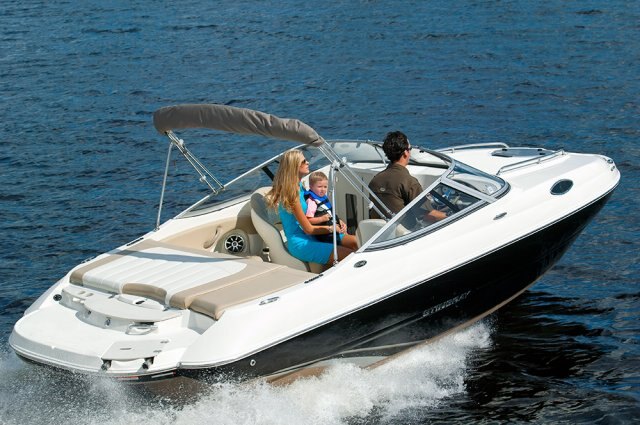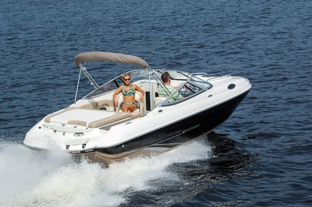 | This may be our entry-level sport deck cuddy, but there is nothing small about this boat. Its extra wide stance makes room for a 15" side entryway to provide quick and easy boarding, while giving up little sundeck area. The wide body design continues in the cabin, where two adults can easily stretch out for a nap. This boat is also a performer! Built on our Z-plane hull, it is both fast and efficient. You will find it a challenge to find another boat in its size range to compete with it. |