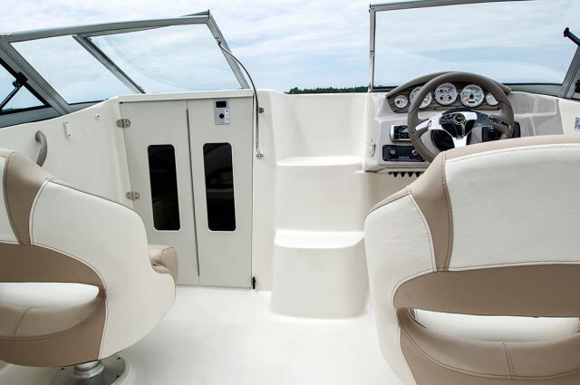 | Want all of the features of a bigger boat without actually having a bigger boat? Look no further. The 215CR packs in ALL of the same features of our 235CR, with the same beam and two feet less to trailer. Before you ask what happened to the other two feet, let us assure you that our designers did an impressive job of conserving space in just the right non-essential areas to bring you this right-sized cuddy. Like all of our sport deck models, the 215CR features a side-entry walkway for easy entry and exit. |