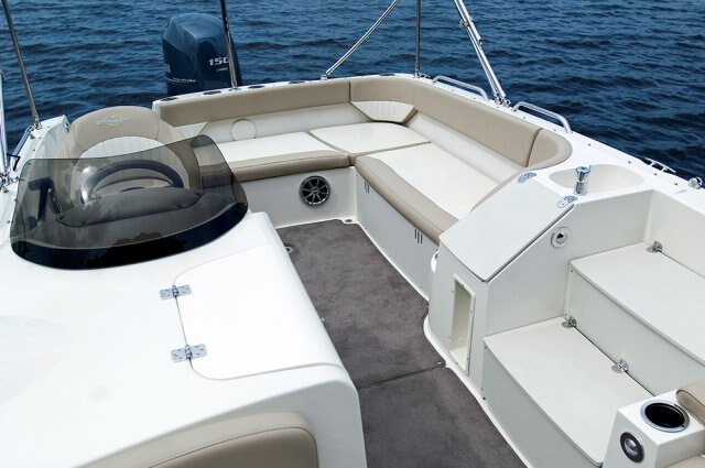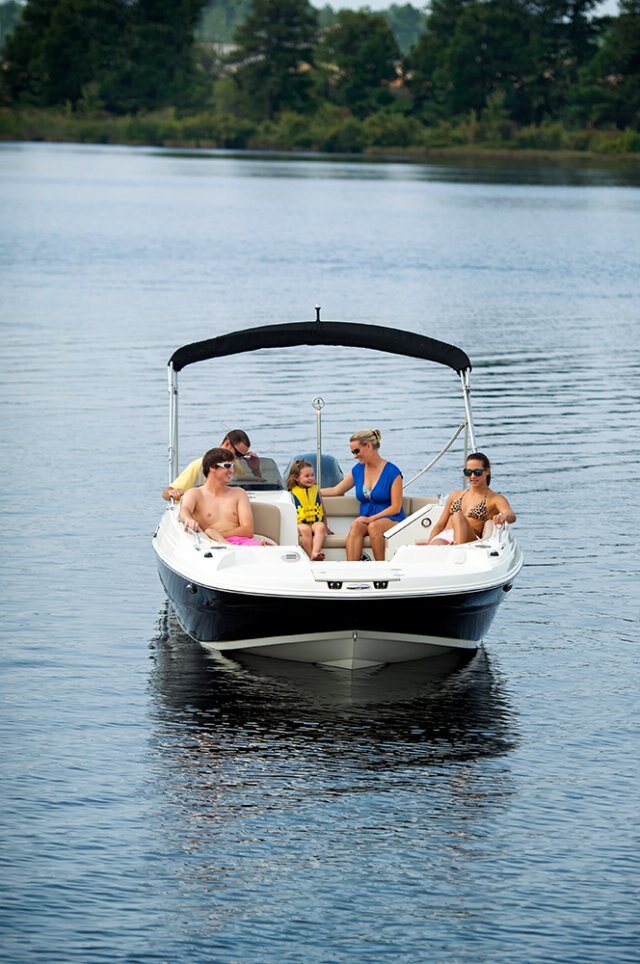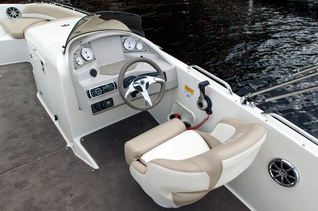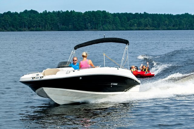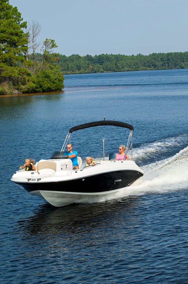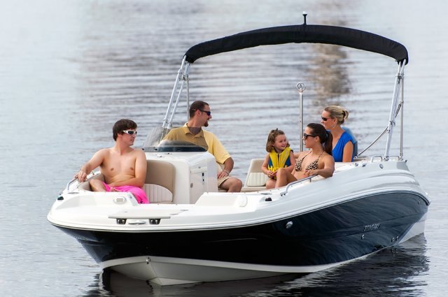 | Bring the kids, bring the friends, bring the tubes! The 212SC, first in a new series of Stingray deck boats, is a breath of fresh air to the deck boat marketplace. In true deck boat style, the spacious floor plan is maximized with an open floor plan in place of the traditional walkthrough windshield. The onboard changing room can double as a head compartment with the addition of the optional porta potti. Hidden storage in the side-entry steps, beneath the seats, and below the cockpit floor provides plenty of room to store the necessities, leaving more room in the cockpit for friends and family. The service friendly outboard combined with the full fiberglass floor liner makes any type of maintenance a breeze. We invite you to take this boat for a test drive. Its superb handling and smooth ride will make every person in the boat want to take their turn at the wheel. Let's go boating! |