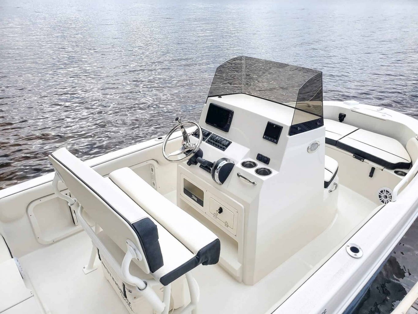THE MODEL YOU'VE BEEN WAITING FOROur 173CC center console is an exciting new model built with our revolutionary Z-Plane hull ideal for all of your on the water adventures. There’s plenty of room for crew and gear onboard, including a cooler/storage box with overboard drain, under-seat bow storage, and an aerated livewell aft. At the helm, there’s a wide leaning post with comfortable seating, a 12V plug and dual USB ports at the dash, power trim and tilt, and a deluxe stainless steel steering wheel. The 173 also has SS rod holders, aft ladder, pull-up cleats and optional ski tow cage. And for assistance with storage, the windshield is completely removable. |