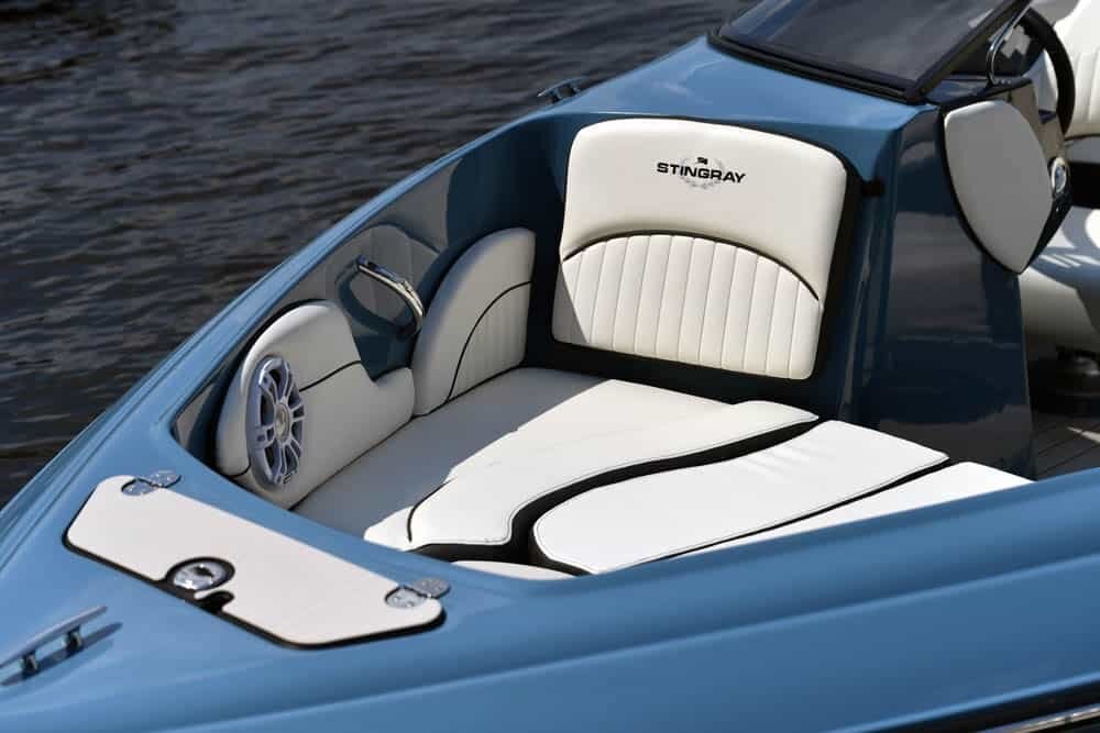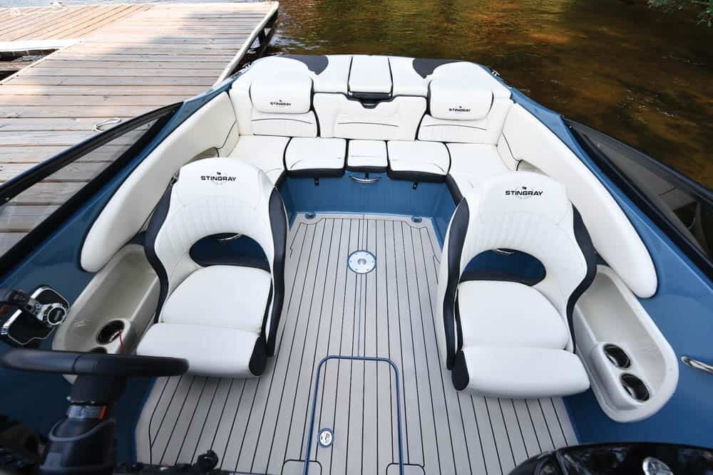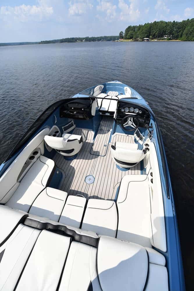 FAST AND SLEEKThe 225SE 40th anniversary edition model has performance and retro styling and lots of room to move around. From the fully integrated swim platform to the removable cocktail table, this boat has everything you need to make the most of your time on the water. With its sleek, low-profile windshield and racy looks, this boat looks fast when it’s still tied up to the dock. The 225SE is packed with amenities, seats up to 10 people, and has special sport upholstery. The boat is standard with Seadek flooring throughout and ensures plush comfort and outstanding non-slip qualities. |