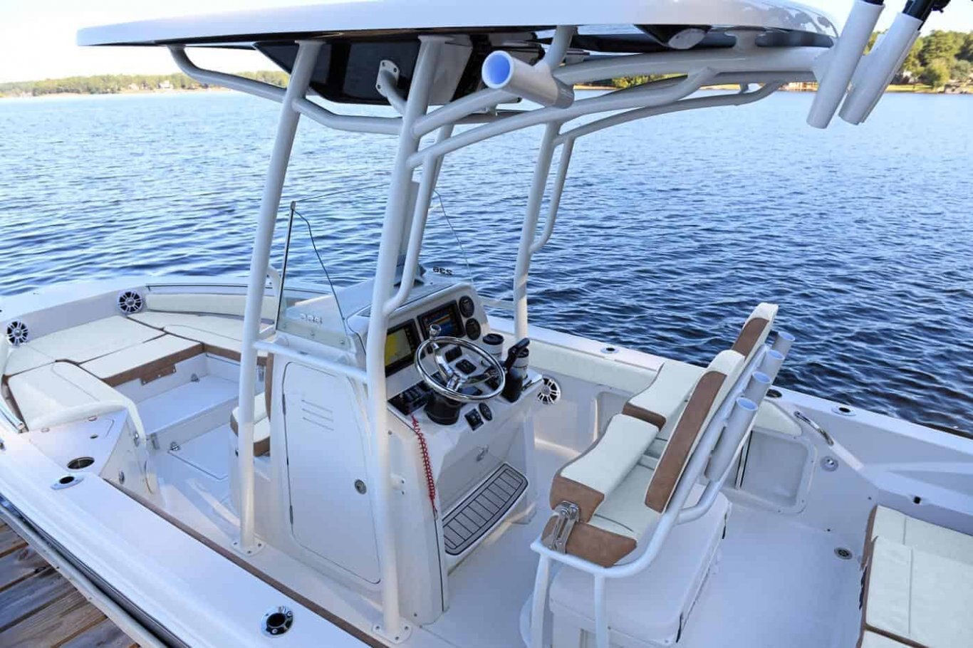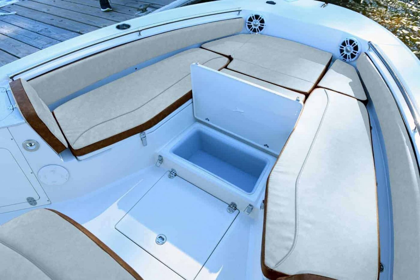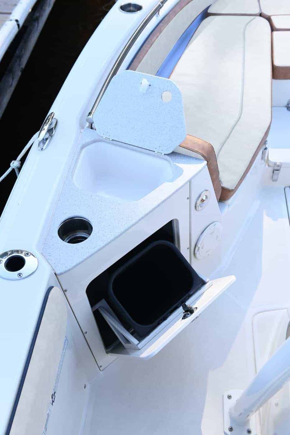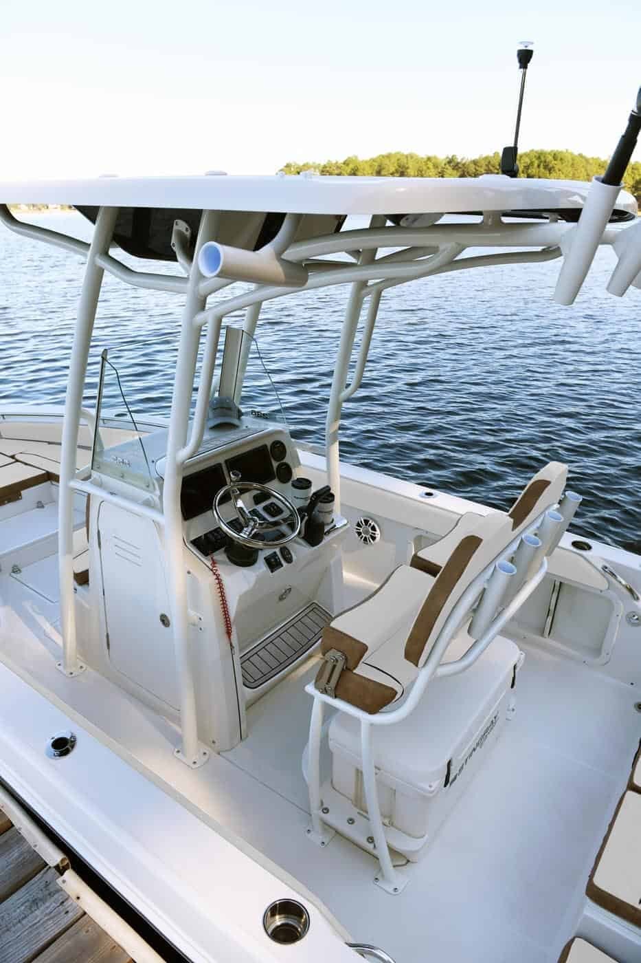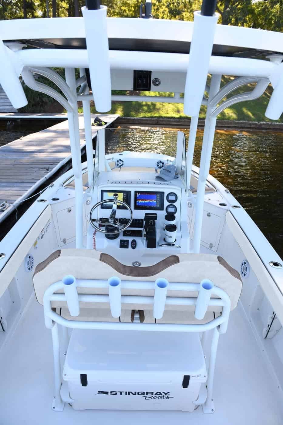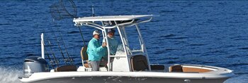 Call Your Fishing Buddies Now!While the 236CC is designed for use as a coastal fishing boat, it's really a multi-purpose boat that can be used for a multitude of activities -- pulling kids on a tube, cruising to dinner, or just a leisurely ride along the waterways. Most noticeable, as you approach the 236CC, is the leaning post, outfitted with custom molded flip-up bolster seats and a 74-quart Engel cooler beneath, and the optional T-top. These features alone set it apart from its little brothers. Add a few options and this boat is ready for some coastal fishing. Go ahead and call your fishing buddies now! Fishing rods and accessories are easily accessible thanks to abundant rod storage around the boat, including molded-in gunnel storage port and starboard, built-in holders on the leaning post, holders at the stern, and holders built into the optional T-top. For a day out with family and friends, the 236CC offers lots of space for maneuvering about, plus seating for up to 12 passengers. To ensure that the deck area is uncluttered, STINGRAY designers effectively made use of all the space on board to incorporate lots of storage areas. The two rear flip-down seats make it easy for passengers to enter and exit from either port or starboard. The bow is large and roomy and can be fully outfitted with cushions for kids, or the family dog. Beneath the helm is a large area that can be used as a changing compartment and also upgraded to a head compartment with the addition of the optional porta potti. |