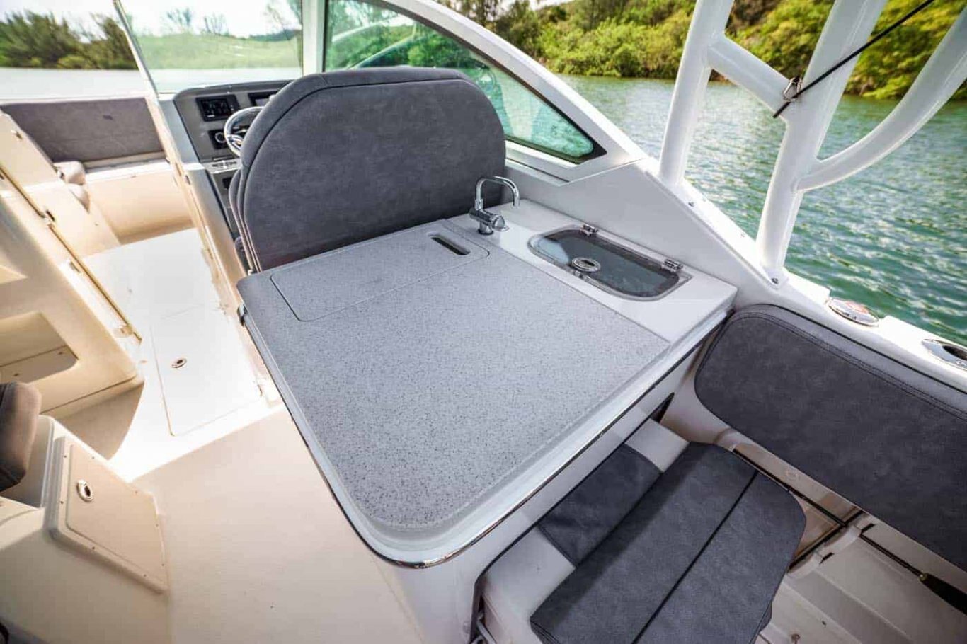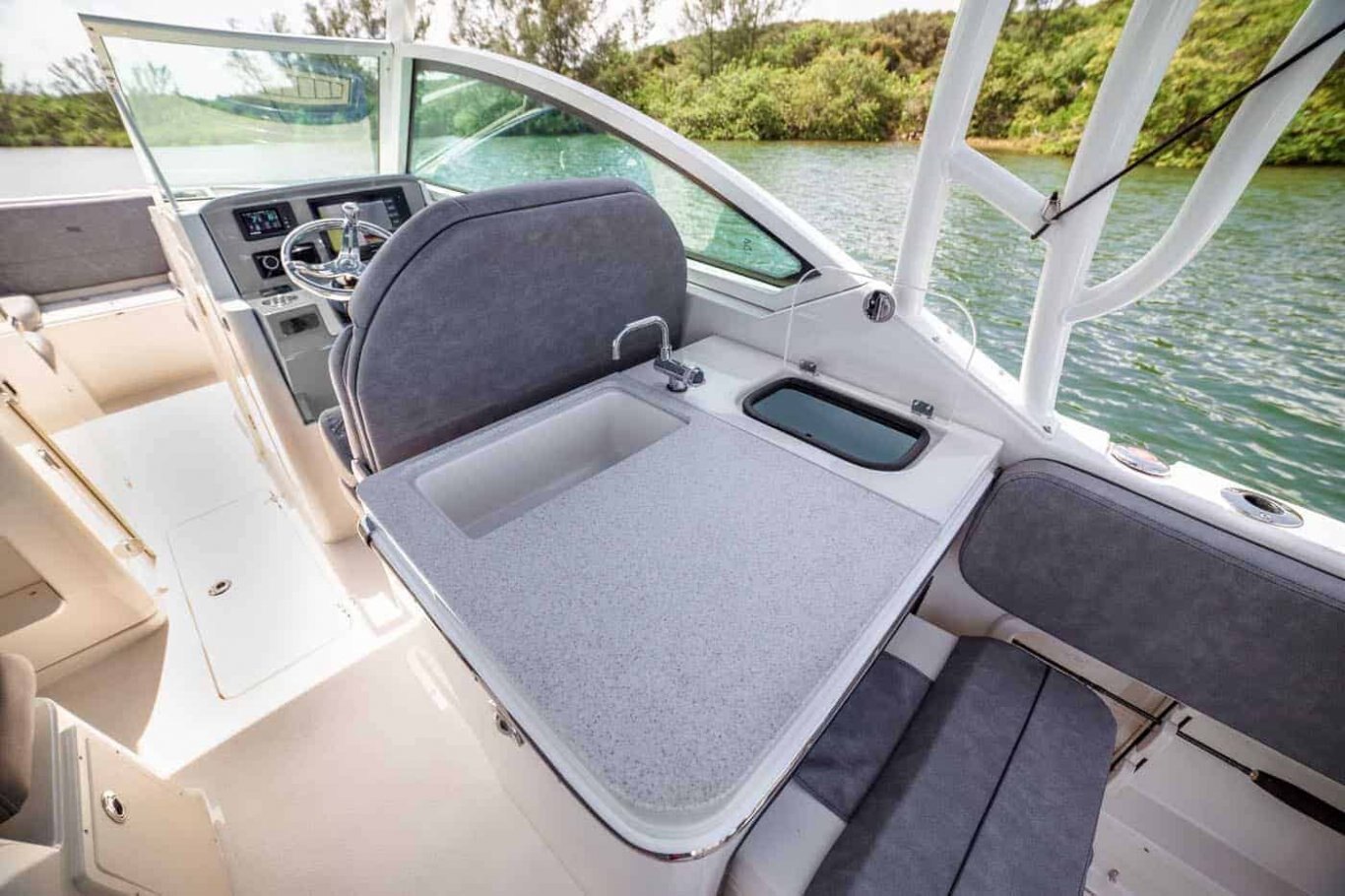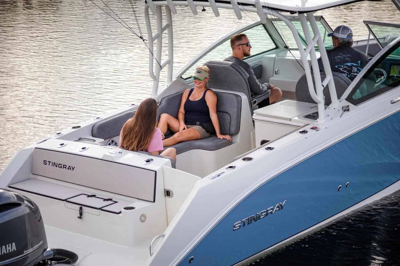 The new 269DC is the perfect combination of engineering form, function and performance. It has all the style and comfort of a dual console, plus it can be equipped for any activity you enjoy on the water. The 269DC delivers a smooth and dry ride attributed to the Z-Plane Deep V Hull and ample deck space suited for family comfort and convenience. Stingray has raised the bar in the crossover market with the 269DC by delivering exceptional value and quality. Comfortable seating throughout the boat, a well-equipped optional cockpit galley, plenty of storage space, a large step-down head compartment and the deep cockpit will make your trips to your favorite destination effortless.