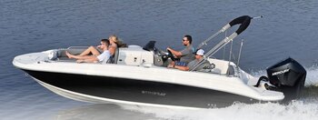 Bring the kids, bring the friends, bring the tubes! The 212SC, STINGRAY's largest deck boat at just under 22 feet, is a breath of fresh air to the deck boat marketplace. In true deck boat style, the spacious floor plan is maximized with an open floor plan. The onboard changing room can double as a head compartment with the addition of the optional porta potti option. Hidden storage in the side-entry steps, beneath the seats, and below the cockpit floor provides plenty of room to store the necessities, leaving more room in the cockpit for friends and family. The service friendly outboard combined with the full fiberglass floor liner makes any type of maintenance a breeze. Contact your local STINGRAY dealer to schedule a test drive. The 212SC's superb handling and smooth ride will make every person in the boat want to take their turn at the wheel. Let's go boating!