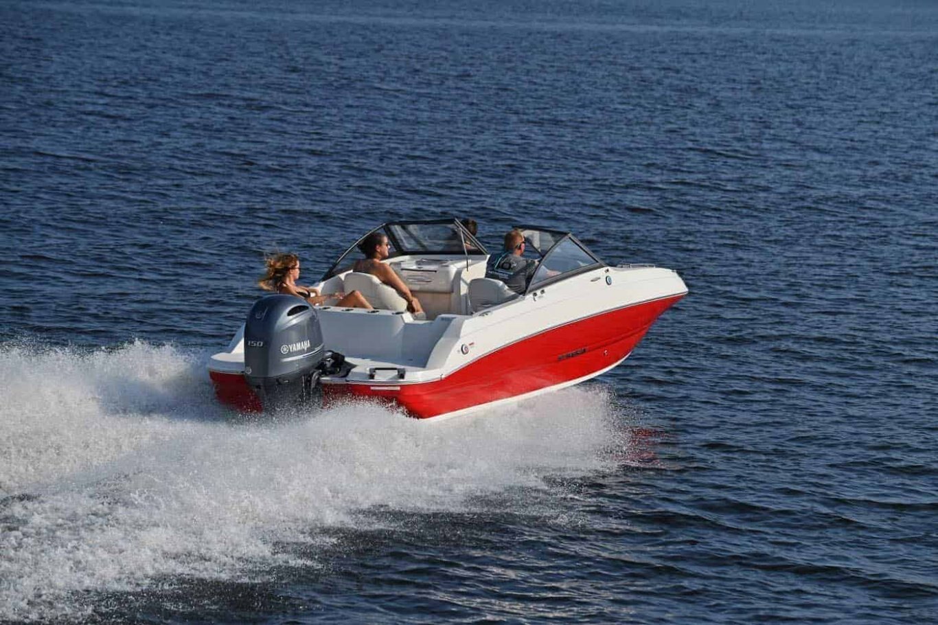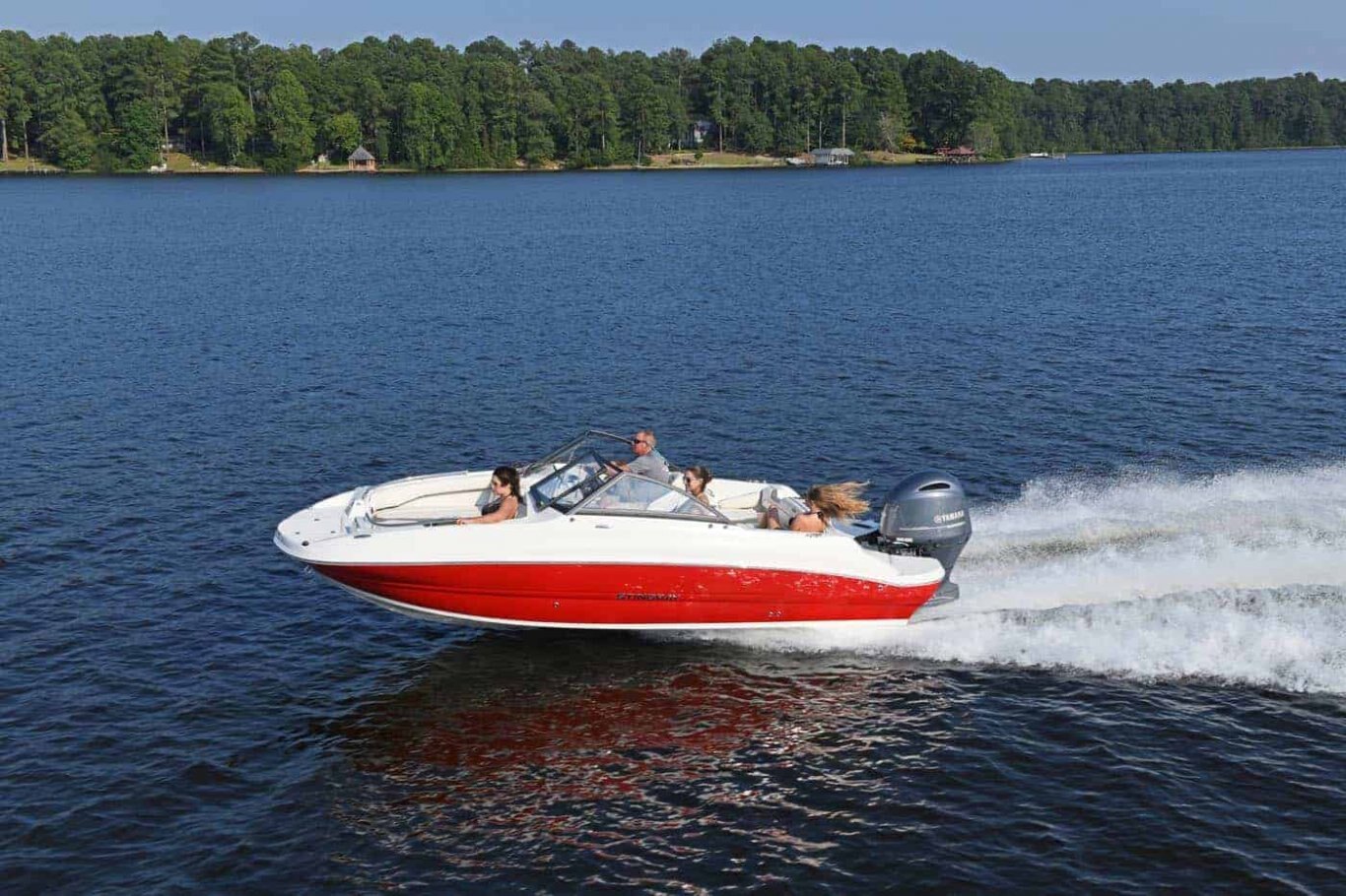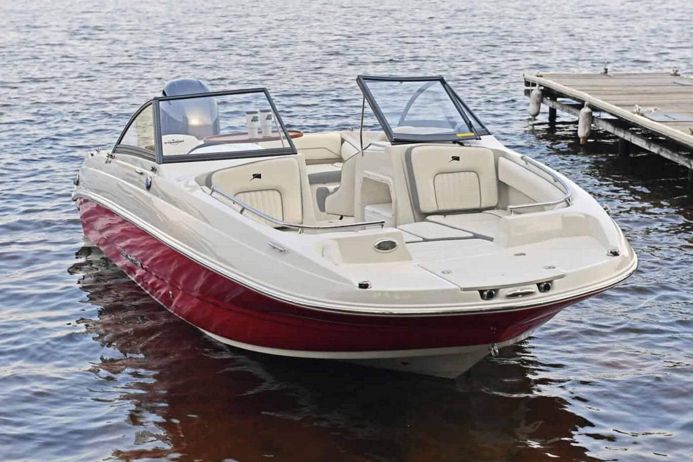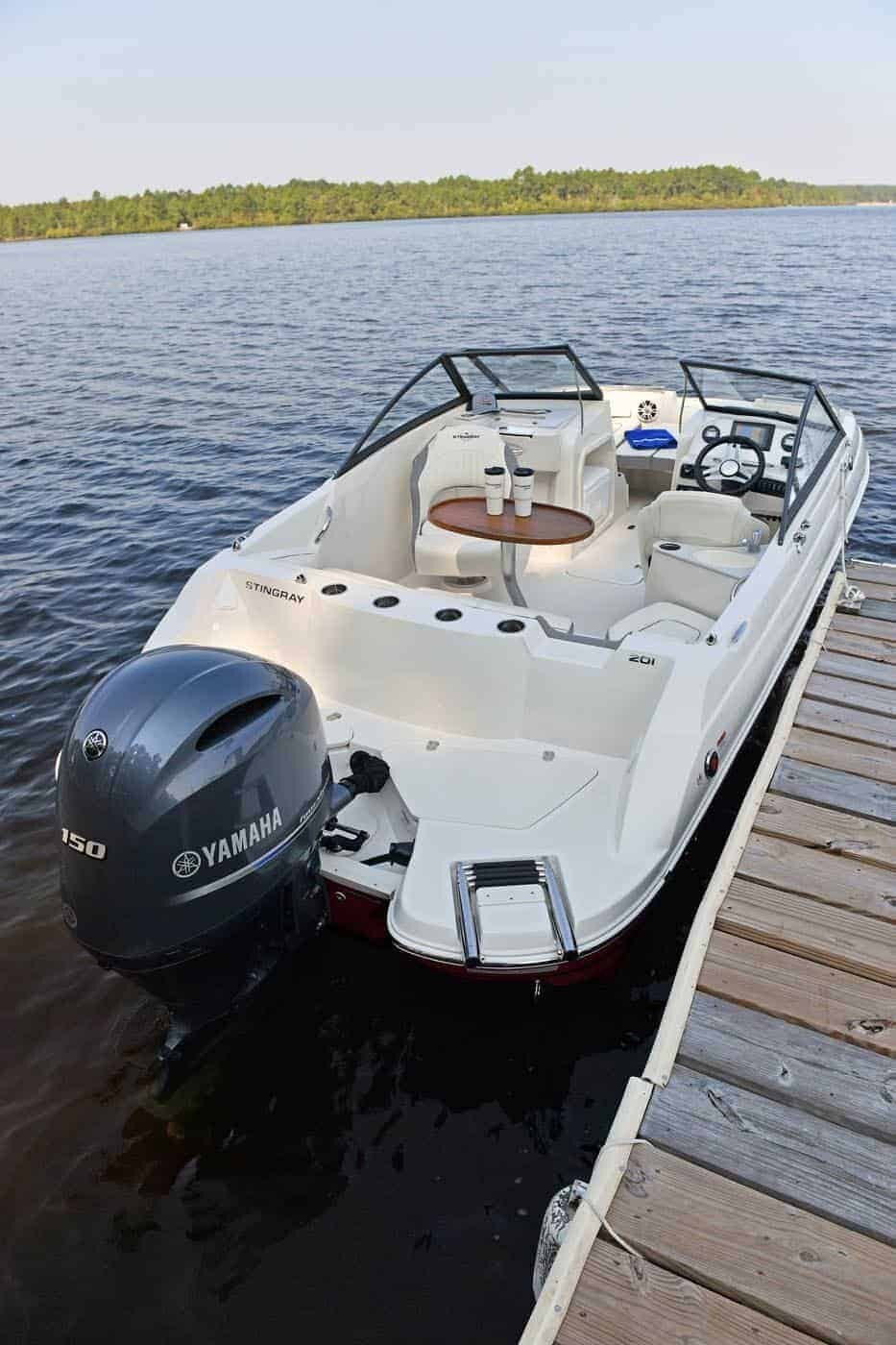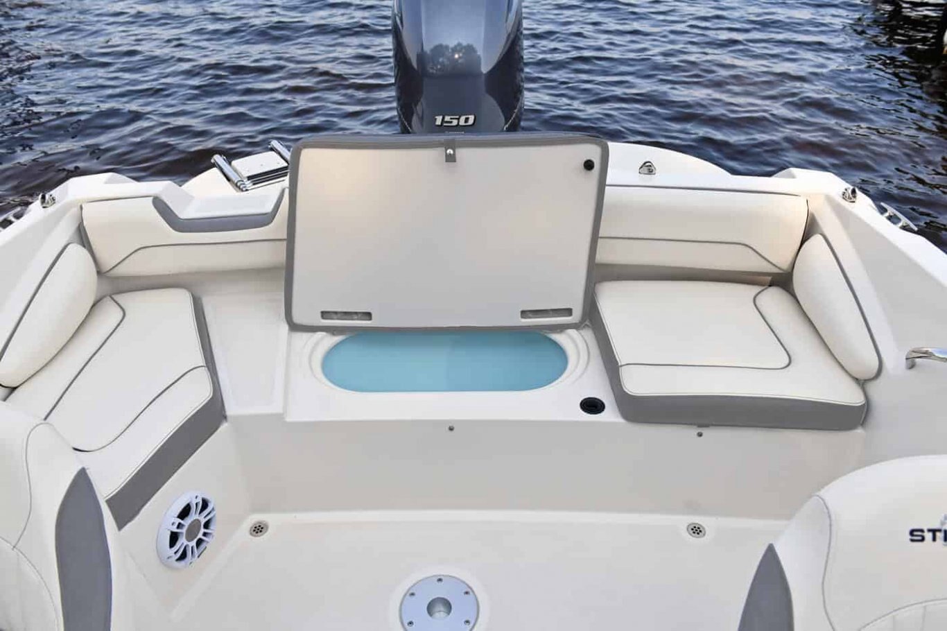 OPEN DECK FEEL WITH A FULL WINDSHIELDIf you love the open feel of a deck boat, but like your boat to have a full windshield, you shouldn't have to choose. The 201DC Dual Console gives you all the interior room and storage space of our 192SC and the added full wrap-around windshield provides a nice shield from the wind while underway. This version gives you two sport bucket seats with bolsters. Deep cockpit and bow areas provide extra safety and security for your passengers. Behind the captain is a solid-surface countertop with a sink and faucet. A mix of dual console deck boat and traditional runabout seating works together to give you a roomy boat with seating for up to 10 passengers. |