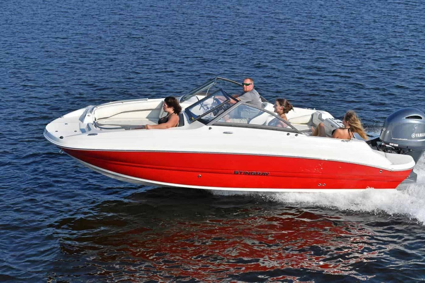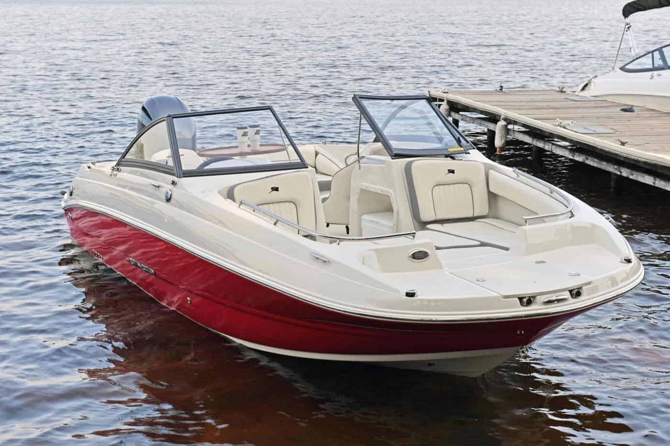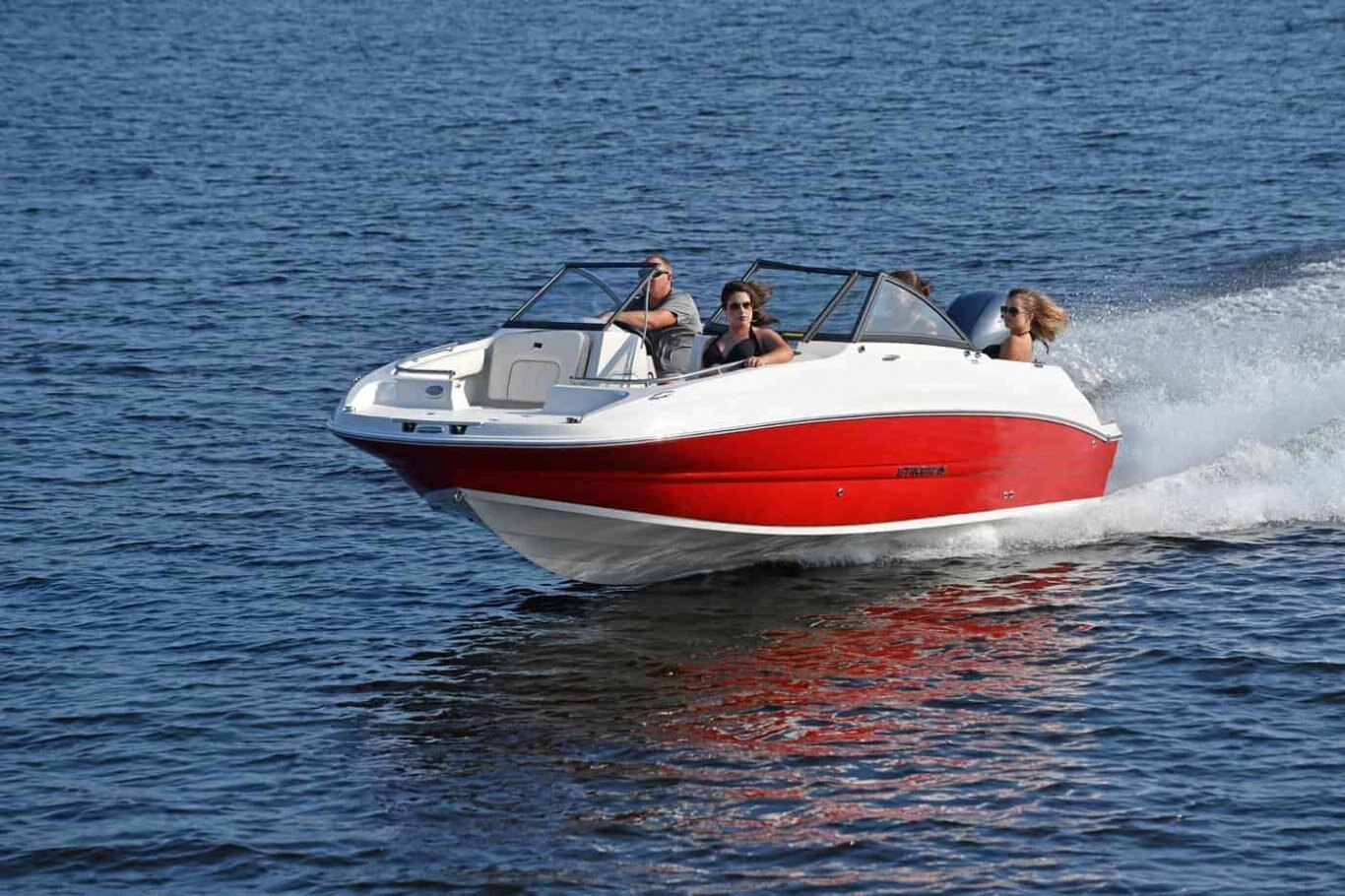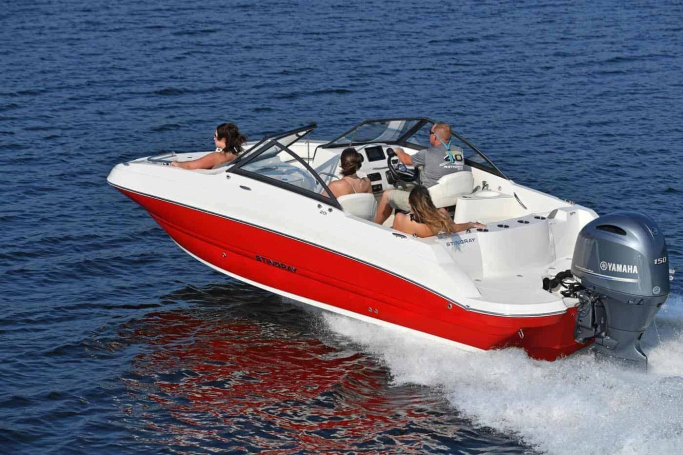 OPEN DECK FEEL WITH A FULL WINDSHIELDIf you love the open feel of a deck boat, but like your boat to have a full windshield, you shouldn't have to choose. The 201DC Dual Console gives you all the interior room and storage space of our 192SC and the added full wrap-around windshield provides a nice shield from the wind while underway. This version gives you two sport bucket seats with bolsters. Deep cockpit and bow areas provide extra safety and security for your passengers. Behind the captain is a solid-surface countertop with a sink and faucet. A mix of dual console deck boat and traditional runabout seating works together to give you a roomy boat with seating for up to 10 passengers. |