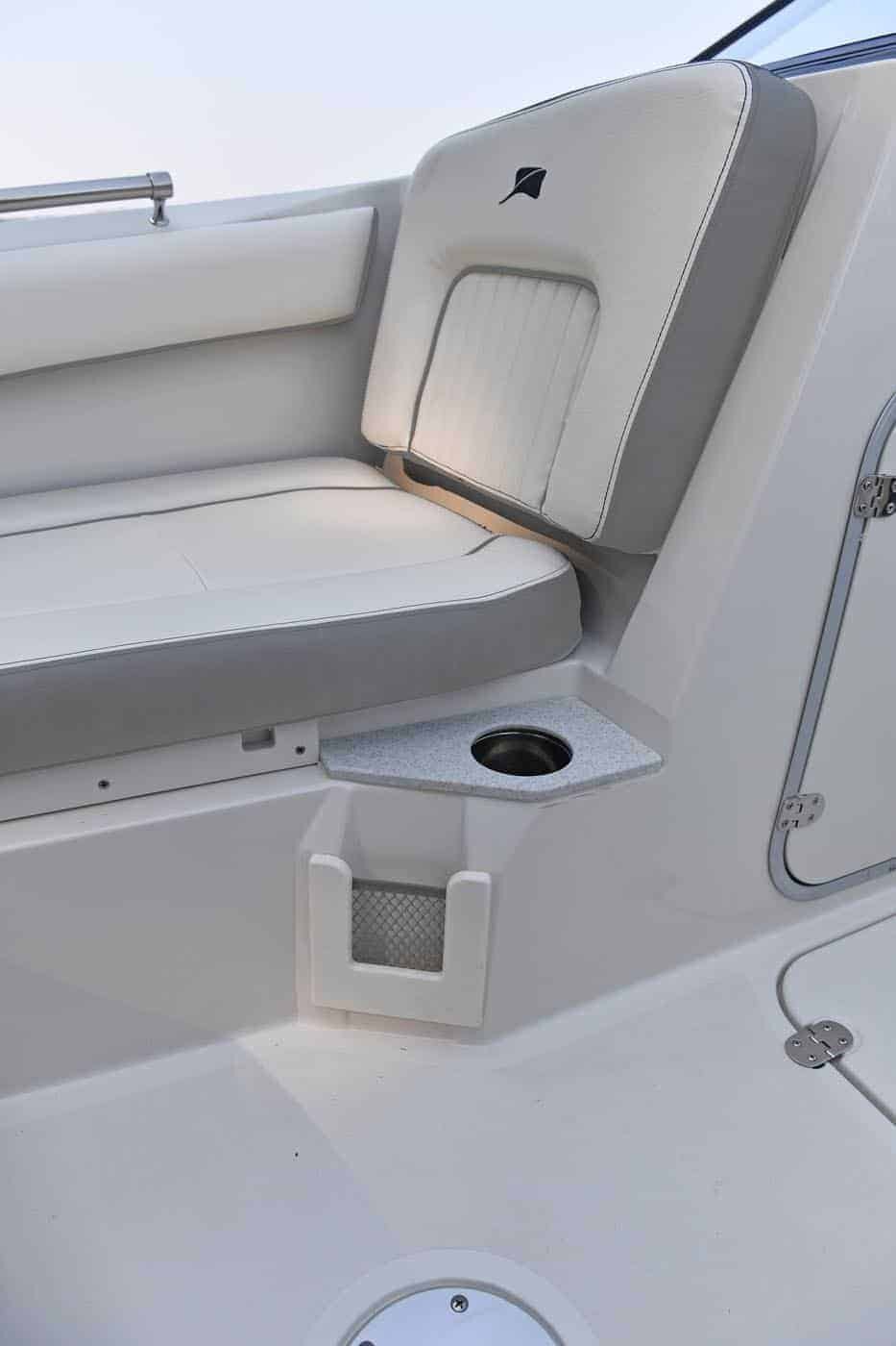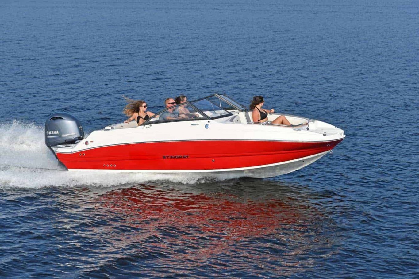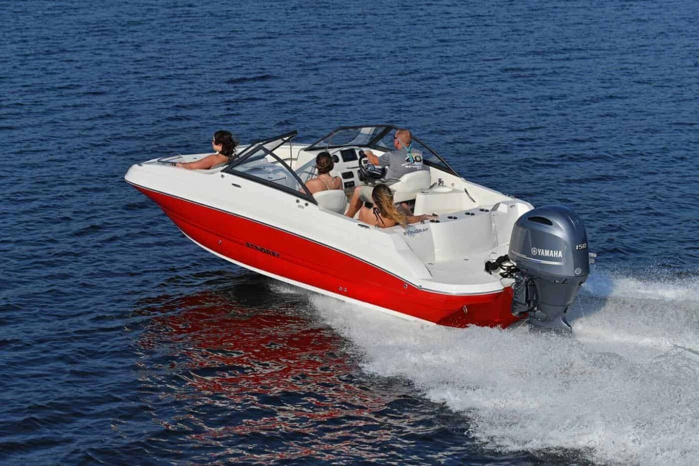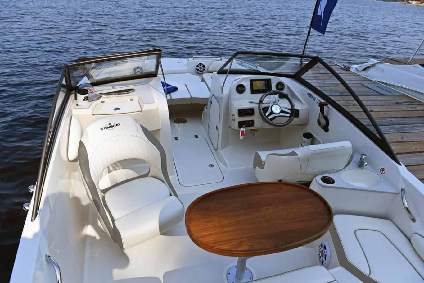 OPEN DECK FEEL WITH A FULL WINDSHIELDIf you love the open feel of a deck boat, but like your boat to have a full windshield, you shouldn't have to choose. The 201DC Dual Console gives you all the interior room and storage space of our 192SC and the added full wrap-around windshield provides a nice shield from the wind while underway. This version gives you two sport bucket seats with bolsters. Deep cockpit and bow areas provide extra safety and security for your passengers. Behind the captain is a solid-surface countertop with a sink and faucet. A mix of dual console deck boat and traditional runabout seating works together to give you a roomy boat with seating for up to 10 passengers. |