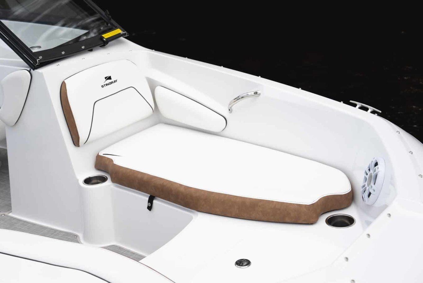 Do you love the open layout you get from a traditional deck boat but miss the full windshield of a standard bowrider? With the 191DC, you get the best of both. It has all the interior room and storage space of our very popular 182SC Deck Boat, but incorporates a full windshield to shield your passengers from the wind. Like other STINGRAY models, the 191DC features deep cockpit and bow areas for extra safety and security when underway. STINGRAY deck boats feature outboard power for ease of maintenance and large swim pods flank each side of the engine to make boarding a breeze. Contact your nearest STINGRAY dealer to schedule a test ride so you can experience the 191DC Dual Console for yourself.