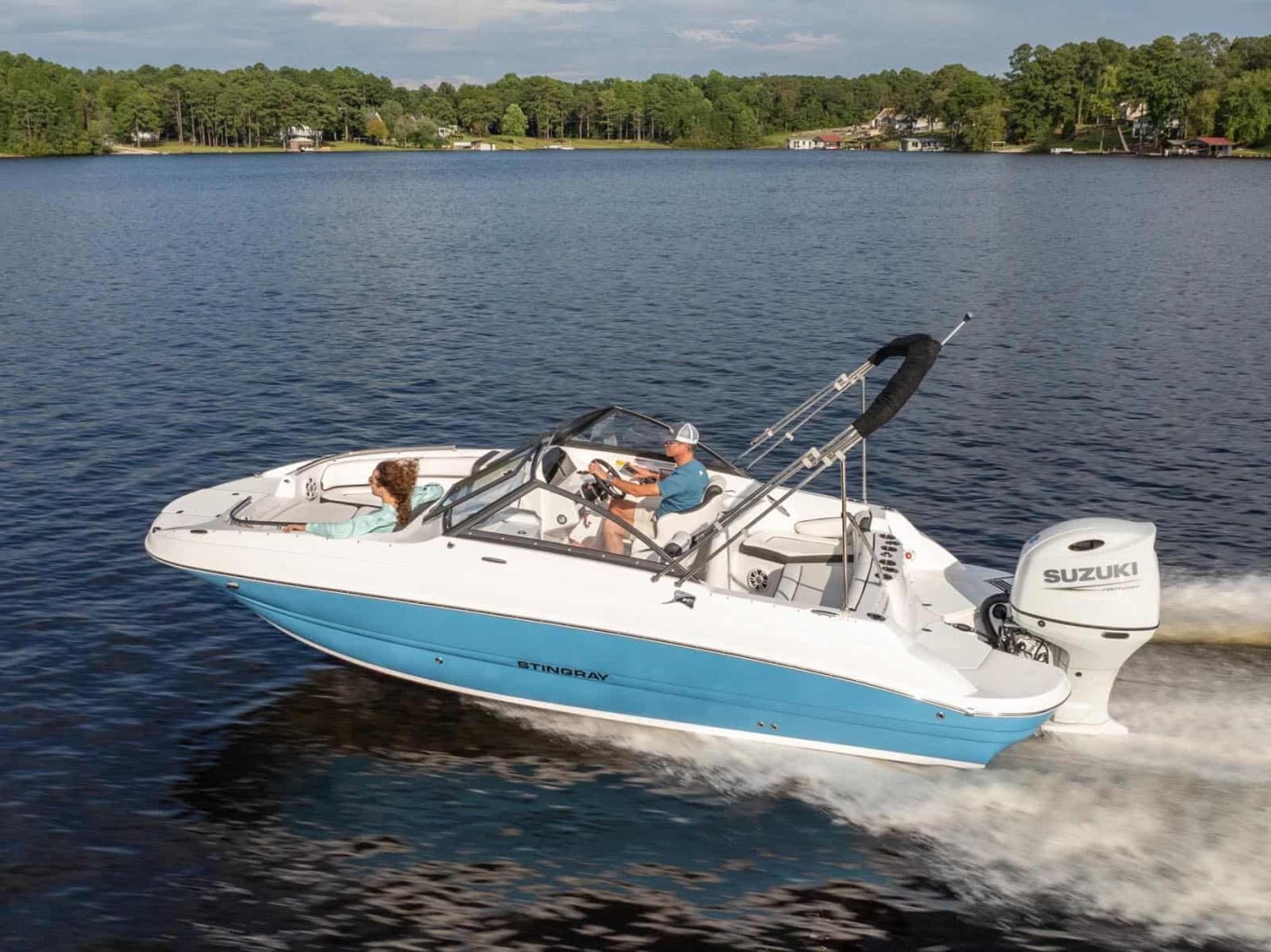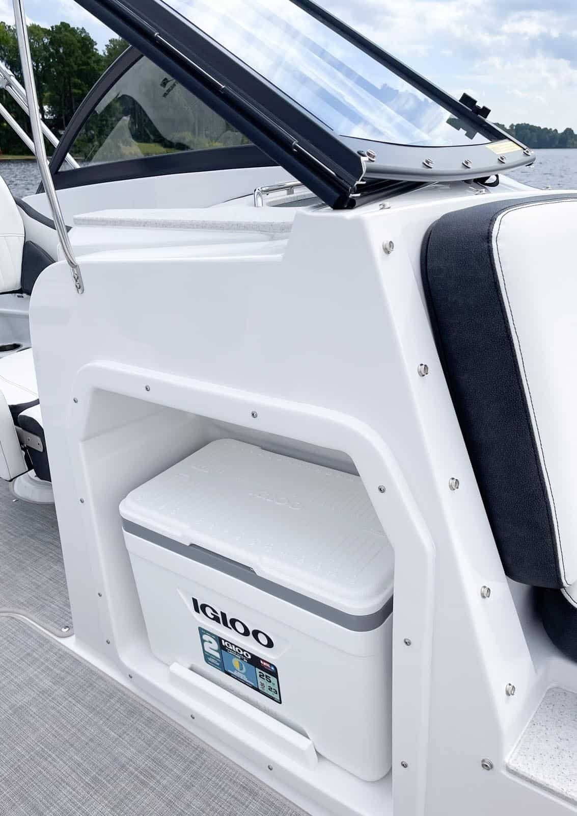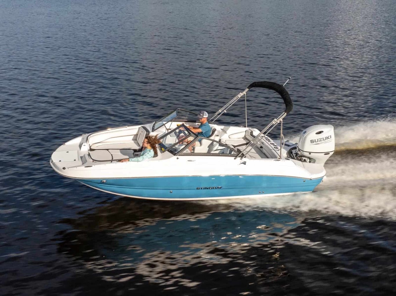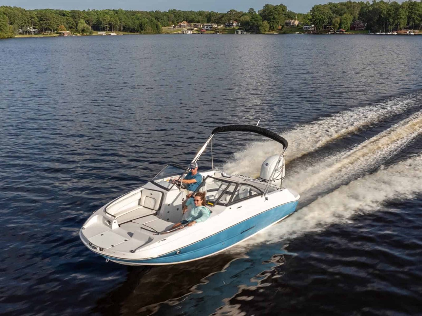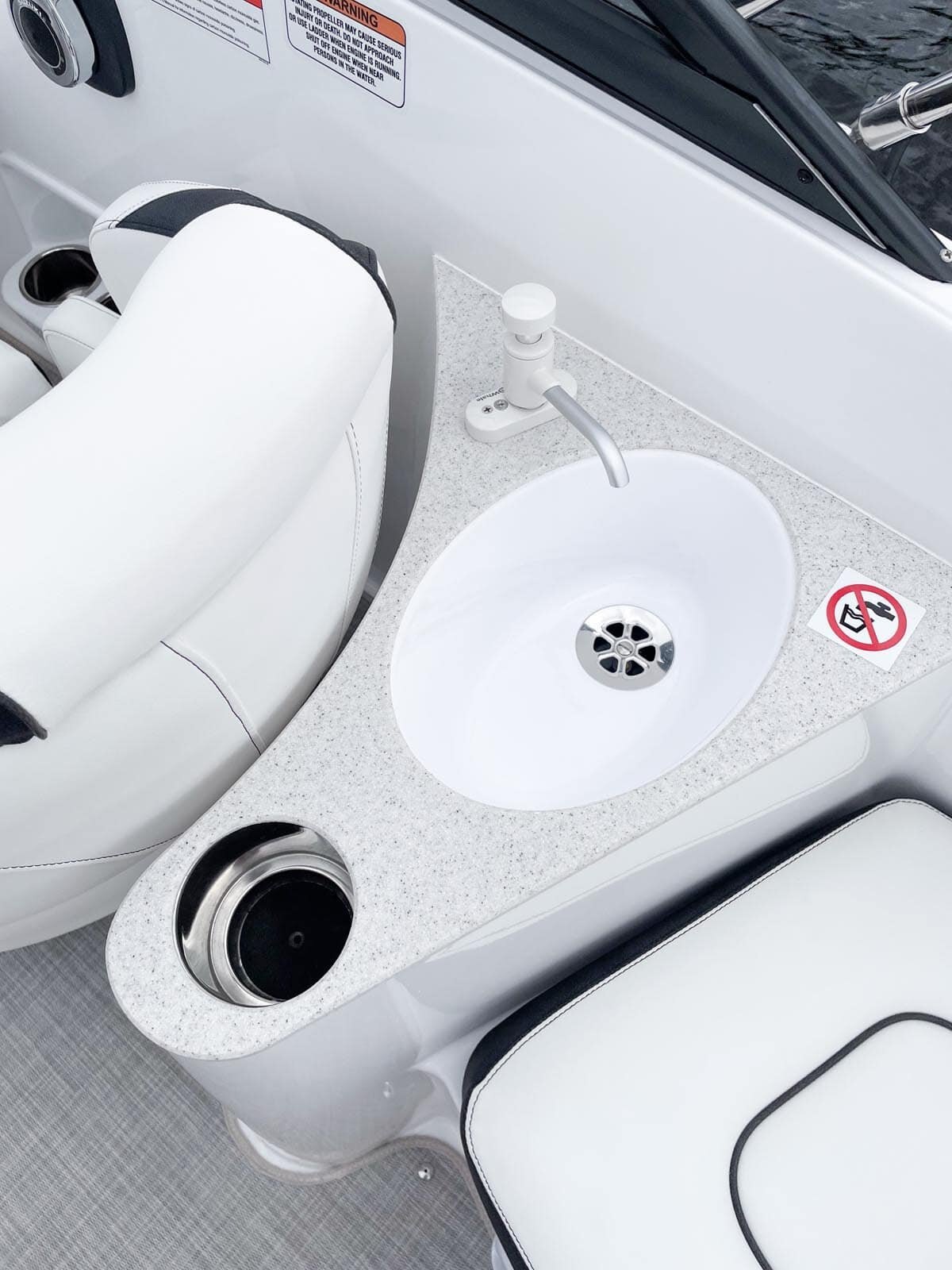 If you love the open feel of a deck boat, but like your boat to have a full windshield, you shouldn't have to choose. The 201DC Dual Console gives you all the interior room and storage space of our 192SC and the added full wrap-around windshield provides a nice shield from the wind while underway. This version gives you two sport bucket seats with bolsters. Deep cockpit and bow areas provide extra safety and security for your passengers. Behind the captain is a solid-surface countertop with a sink and faucet. A mix of dual console deck boat and traditional runabout seating works together to give you a roomy boat with seating for up to 10 passengers.