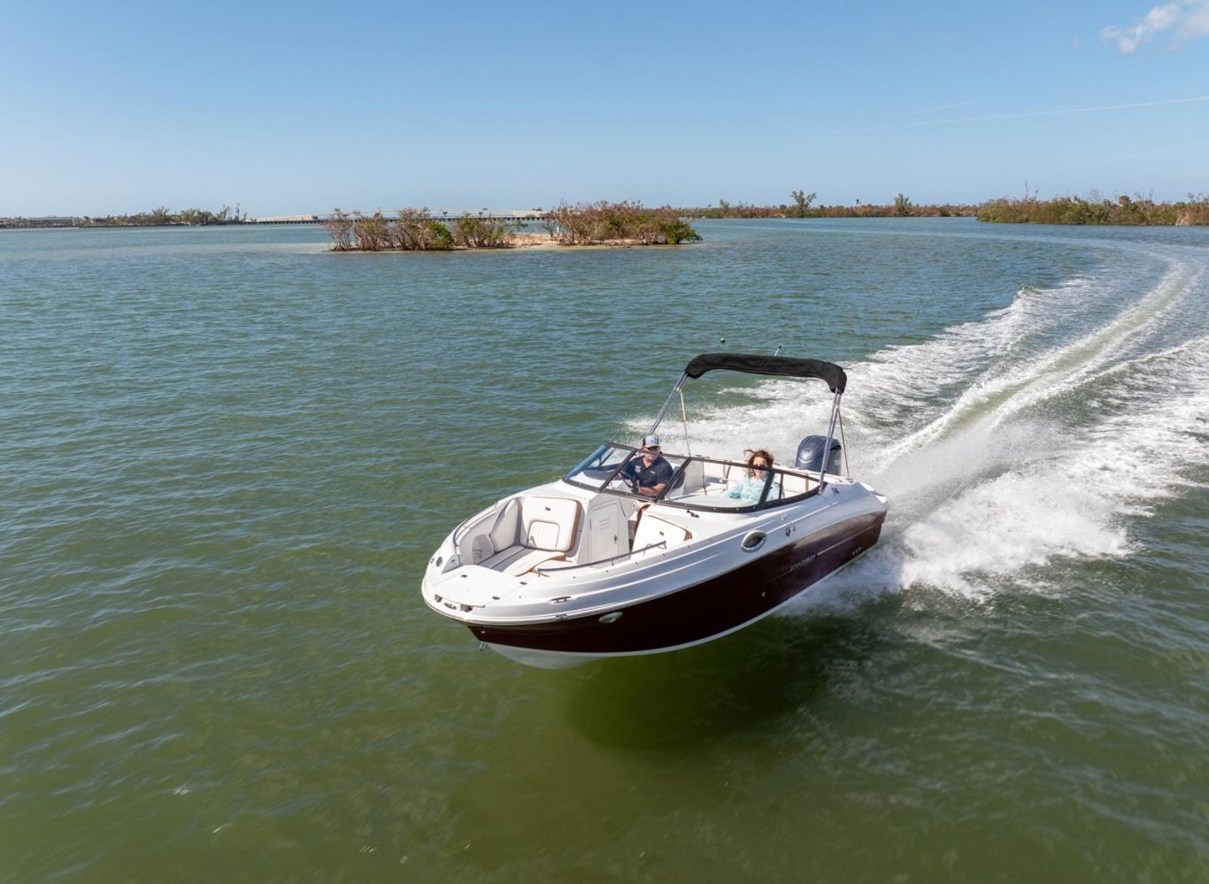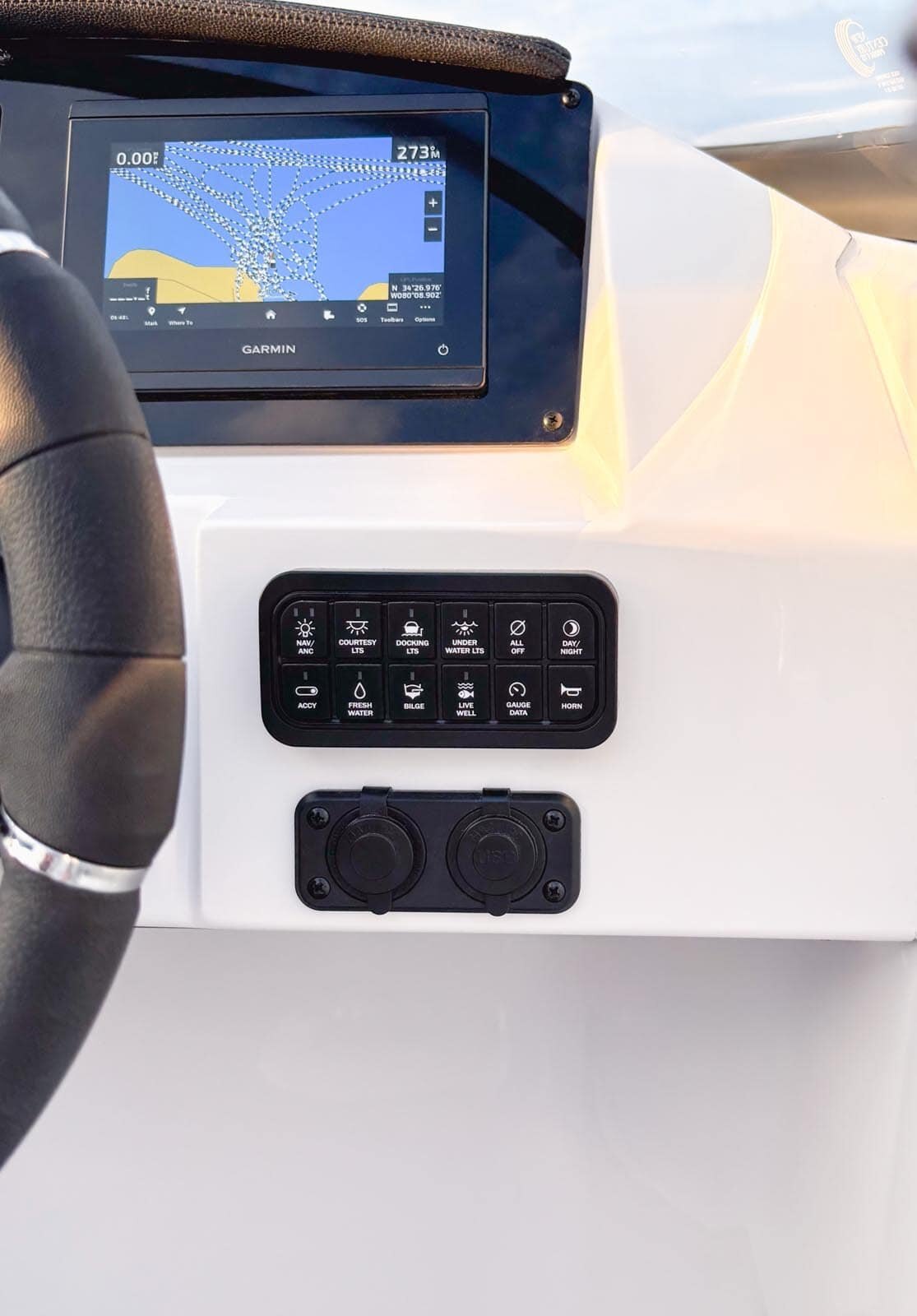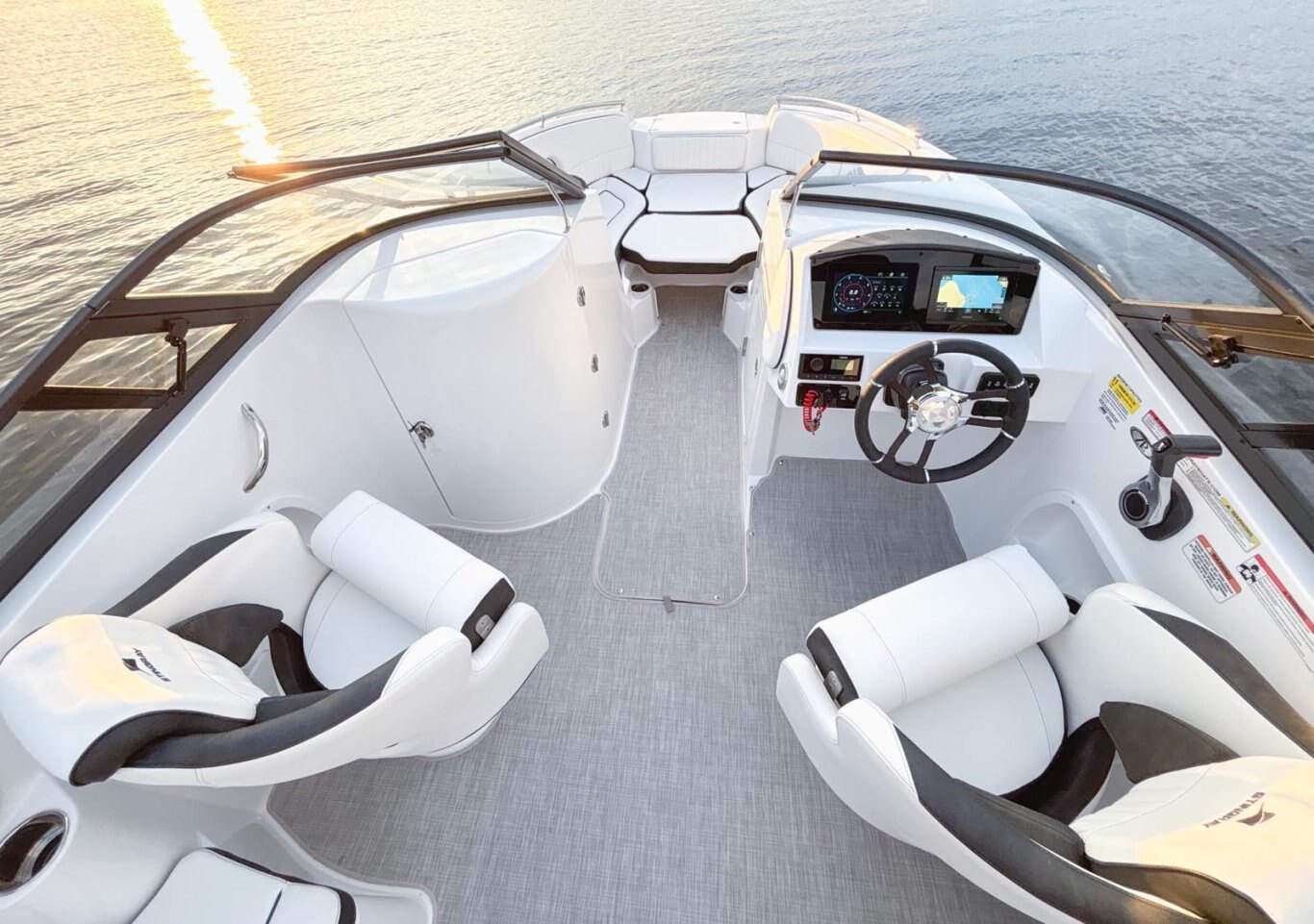 The 211DC is a delightful dual console dayboat that has magnificent comfort, exceptional versatility and thrilling performance in a sporty yet elegant design. The wide, sport deck design creates plenty of interior space, with a large bow and aft seating with filler options, a freshwater sink in the head compartment and a cockpit table with side mounts to make a day on the water with your crew a breeze. We will see you on the water!