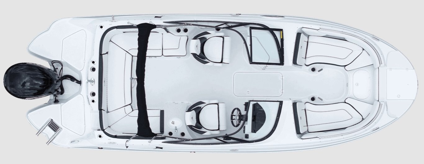 Standard Features Exclusive Z-Plane Hull 3-Year Hull Blister Protection Plan Limited Lifetime Hull Protection Plan Digital Switching w/ Integrated Touch Screen Bilge Pump 1100 GPH Auto/Man Bow Storage & Bow Anchor Locker Certifications: NMMA, USCG Fuel System EPA Compliant Cooler/Storage Box with Overboard Drain Dash Accessory Plug 12V w/ Dual USB Ports Floor Storage w/ Oversize Door Integrated Electric Horn Stain Resistant Vinyl Oversized Cup Holders Stainless Steel Package Stainless Steel Bow Rails Stainless Steel Multi-Step Aft Ladder Stainless Steel Cleats Cooler 25 qt Igloo (removable) Adjustable Pedestals for 2 Bucket Seats Safety Glass Windshield Self Bailing Cockpit Porta-Potti with Dockside Pump Out Pressurized Water w/ Bow & Transom Shower LED Docking Lights – Stainless Steel Cockpit Table w/ Side Mount(s) Italian Steering Wheel Fusion RA-60 Stereo BT-APP Cockpit and Bow Cover Dual Bucket Seat w/ Bolster Bimini Top Battery Switch Head Floor Reflex