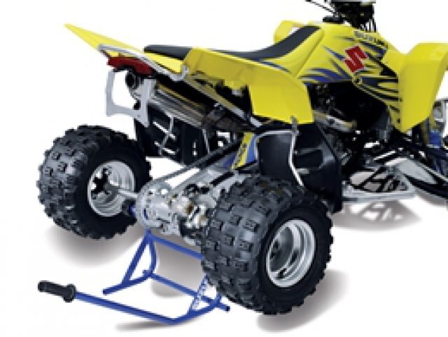 Powder-coated steel lift stand makes chain maintenance andwheel changing much easier. Long handle for easy lifting andextra wide rollers for free axle movement. Fits LT-R 450 and most Sport ATV rear axles.