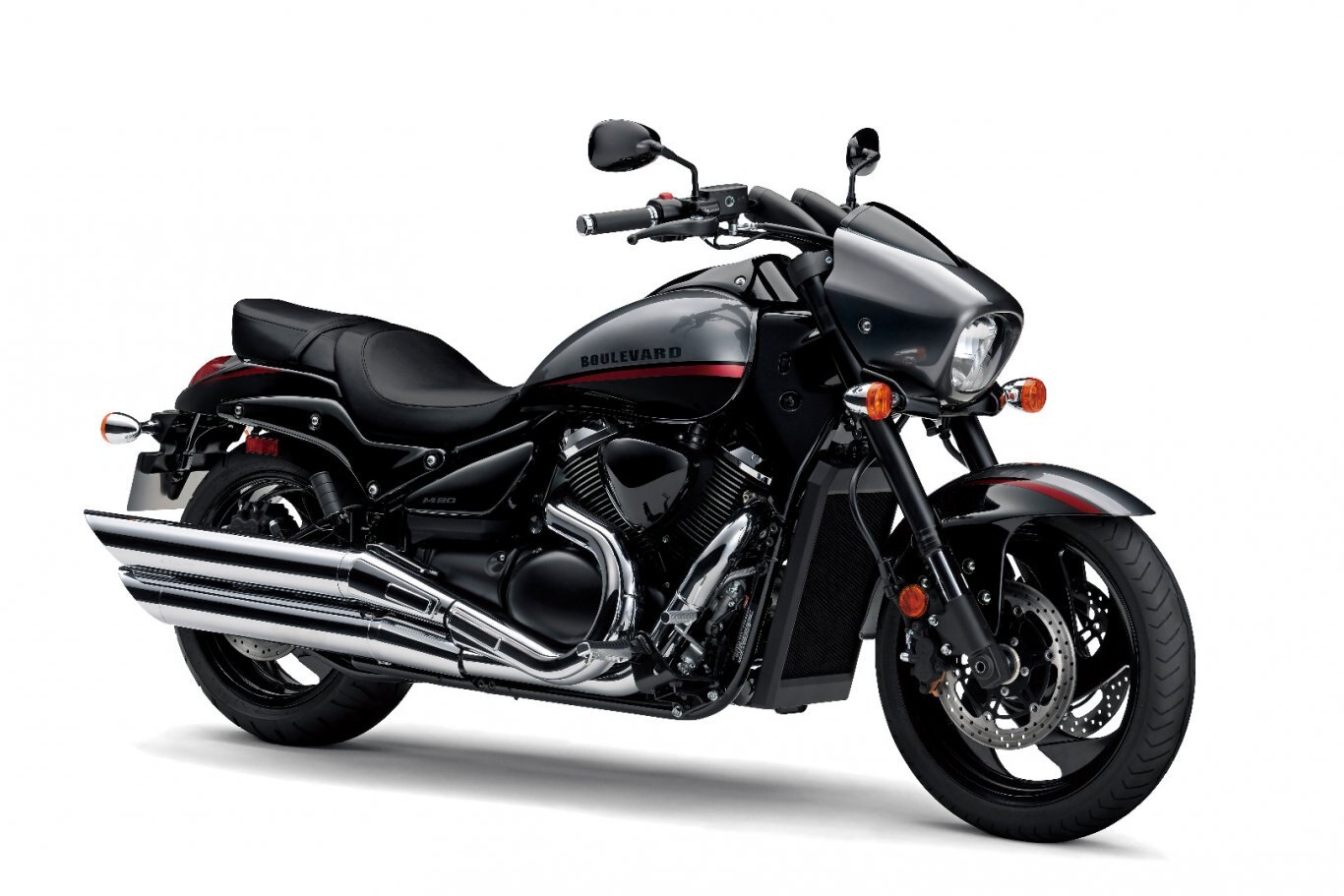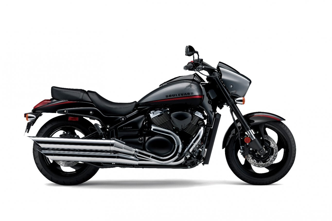 The Boulevard M90's stylish cutting edge look features sleek flowing lines swooping from a distinctive headlight cowl to a smooth tail section and wider rear fender covering a massive 200 section rear tire. |
