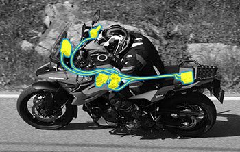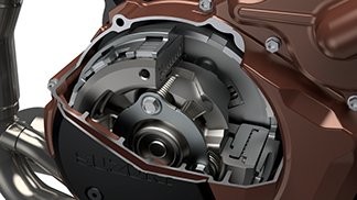 The Suzuki Clutch Assist System (SCAS) works as an assist clutch to make the lever easier to pull while transmitting the power output, reducing fatigue on long touring. |