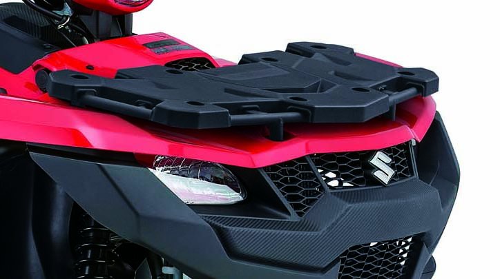The cargo racks have new, high-impact plastic covers to shield cargo from wear. The front cover has been profiled to enhance the front end of the ATV . The covers are easily removable for mounting of Suzuki accessories or other gear directly to the cargo racks. |
