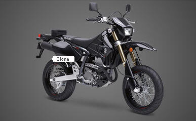 Engine Type Four-stroke, single cylinder, DOHC, 4-valve, liquid cooled Displacement 398cc Bore/Stroke 90 x 62.6 mm Compression Ratio 11.3:1 Fuel System Mijuni BSR36 Lubrication Dry Sump Ignition Digital/DC-CDI Starter Electric Transmission 5-speed Final Drive #520 chain Overall LxWxH (mm) 2.220 x 870 x1.185 mm LxWxH (in) 87.4 x 34.3 x 46.7 in. Seat Height 890 mm (35.0 in.) Wheelbase 1.460 mm (57.5 in.) Ground Clearance 300 mm (11.8 in.) Dry Weight 134 kg (295 lbs) Front Suspension Inverted telescopic, oil-damped, adjustable compression and rebound damping Rear Suspension Link-type, fully adjustable spring preload, adjustable compression and rebound damping Front Brakes Single hydraulic disc Rear Brake Single hydraulic disc Front Tire 120/70-17 Rear Tire 140/70-17 Fuel Tank Capacity 10 liter (2.2 imp gal.) Colour Black, White