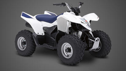 Specifications Engine 89.8cc, 4-stroke, single cylinder, air-cooled Bore Stroke 45.5 x 55.2mm Ignition CDI Compression Ratio 9.2:1 Transmission V-belt, automatic Final Drive Chain Front Suspension Independent, single A-arm, oil damped shocks Rear Suspension Swingarm, coil spring, oil-damped shock Front Brakes Dual mechanical drum Rear Brakes Mechanical drum Front Tire AT 19 x 7-8 Rear Tire AT 19 x 7-8 Overall Length 1515mm (59.6 in.) Overall Width 855mm (33.7 in.) Overall Height 865mm (34.1 in.) Wheelbase 1030mm (40.6 in.) Seat Height 645mm (25.4 in.) Ground Clearance 150mm (5.9 in.) Dry Weight 115 kg (254 lbs.) Fuel Tank Capacity 6.0 liter (1.32 imp gal.) Colour Yellow, White
