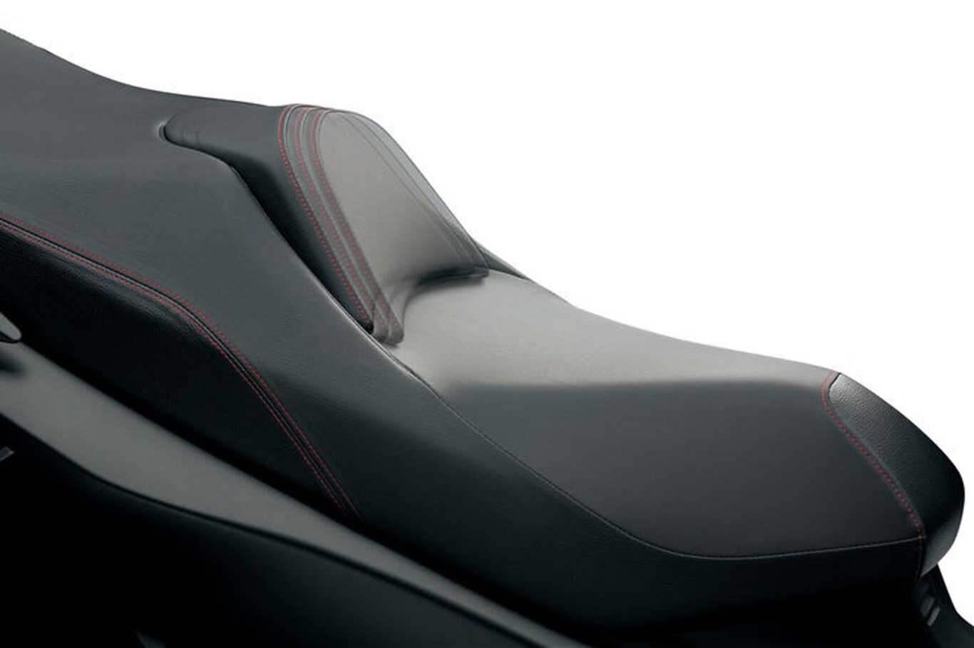 The stepped dual seat offers luxurious comfort for rider and passenger alike by combining a cushion that is 20mm thicker and a shape that is slimmer than on the current model. Double stitching adds a distinctively fashionable accent.