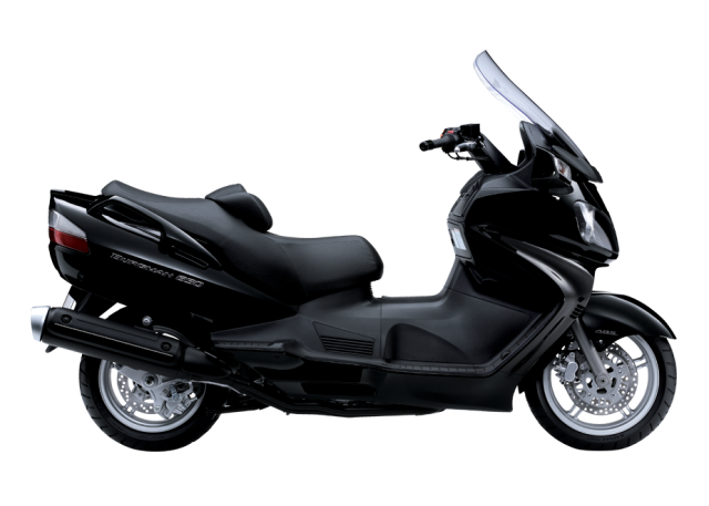 The stylish Burgman 650 Executive, it has all the great features of the Burgman 650 with ABS, an electic adjustable windshield and a passenger backrest. With the largest engine in its class, the Burgman 650 rewards you with strong acceleration around town or on the highway. Its refined fuel injection system offers instantaneous throttle response. And, for convenient operation and incredibly smooth performance, it has a technically advanced Suzuki Electronically Controlled Continuously Variable Transmission (SECVTTM). Wherever you ride, you and your passenger will appreciate the smooth, comfortable ride, plush, responsive suspension, and a deep, well-padded seat complete with a backrest for the rider. Large floorboards and spacious ergonomics further contribute to your comfort. The Burgman 650 is as practical as it is stylish. It has terrific storage space, including a cavernous underseat storage area capable of holding two full-coverage helmets. What's more, three front compartments with lids allow easy storage of and access to your smaller items.