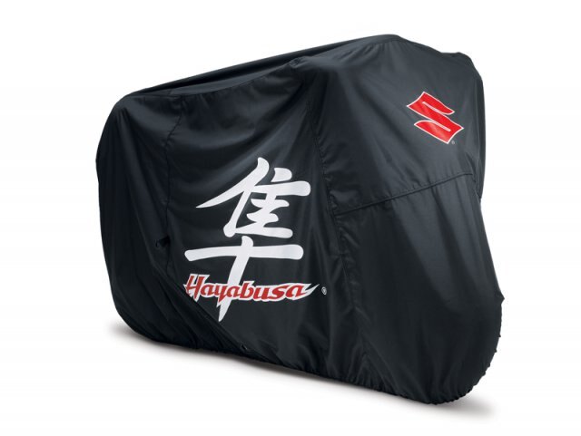 Hayabusa covers are constructed from heavy-duty polyester with special Color-Lok® fabric toprevent fading. More features include: fully taped seams with waterproof ClimaShield® fabric withside vents allowing the cover to breathe, protective interior windshield liner, full aluminized heatshield allows immediate use after riding. Sewn-in elastic shock cord, under-bike web strap andgrommets to allow use of a cable lock. Silk-screened graphics as shown. A convenient storagebag is included. All covered by a lifetime warranty.