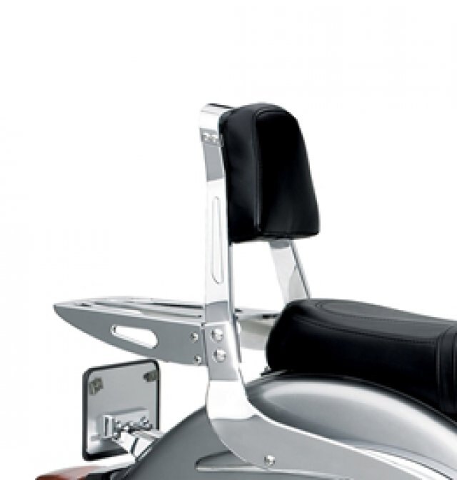 Custom-crafted billet accessories are CNC machined solid billet aircraft-quality aluminum to meet Suzuki's exacting standards. The finished pieces are treated with Zinc-Aid for maximum adhesion and triple chrome-plated for a dazzling, long-lasting shine. Custom billet aluminum backrest with standard vinyl covered pads. Standard are available in short and tall styles. *Mounting Hardware required for installation. Sold separately. Rear rack not included.