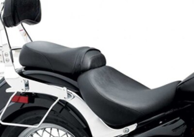 Custom looking design incorporates a gel insert under the rider wrapped in vinyl seat cover, passenger pad does not have gel. Don't mess around with...