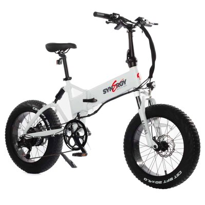 The SYNERGY STEP is a fat tire folding electric bike with a weight of about 62lbs, making it perfect for people with limited storage space....