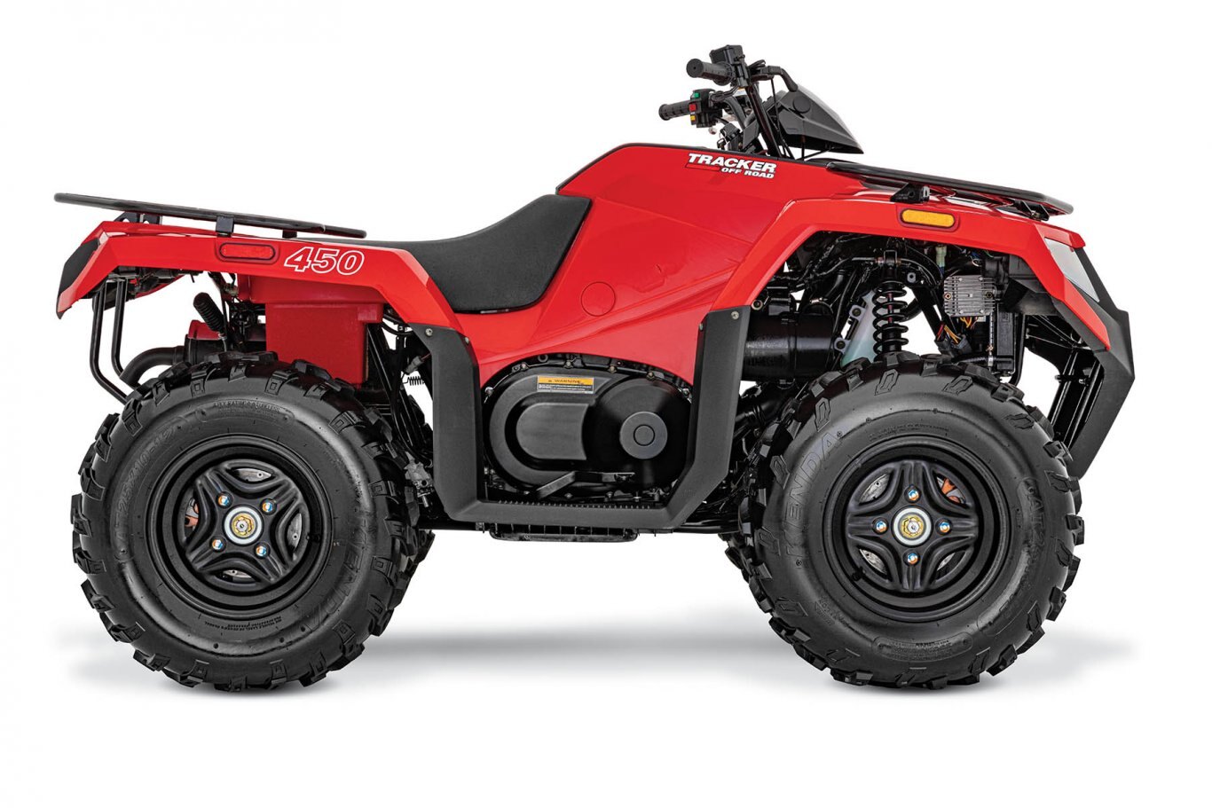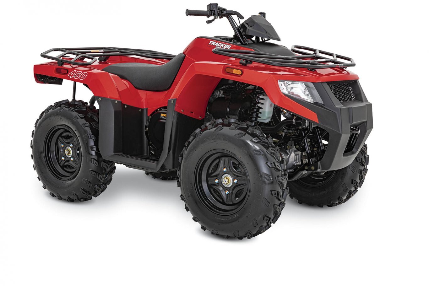The TRACKER OFF ROAD 450 carries more features for the best value in its class. The torquey 443cc EFI engine kicks up dirt and hauls a load via the twin steel cargo racks and the 2” receiver hitch in the rear. High and low gears paired with 4WD make the 450 an extremely capable machine for any terrain.